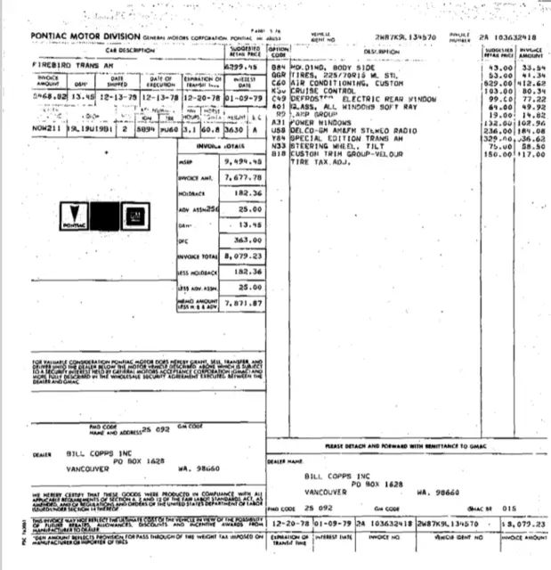 1979 Pontiac Trans Am Y86- Special Edition Bandit Additional Info:
