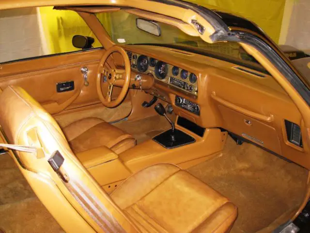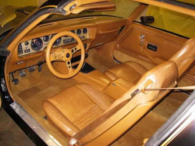 The body.......this car had sat in a garage for over 31 years when I found it, so the body escaped the ravages of time that most old cars fall victim to. It was straight, solid, and rust free. There were a few small scratches and dings from the 43000 miles it did travel, so we went ahead and stripped the car down and applied all brand new, correct, Code 19Starlight Black paint. All the decals and pinstriping are brand new. All of the weatherstripping was replaced except for the t-top seals, which were perfect. The wheels were restored to perfect condition and new lug nuts and center caps were used. The glass is all original and the T-tops are in perfect condition. The original jack assembly, space saver spare tire, and air inflator are in the trunk, along with the original leather t-top bags. The body and paint on this car are truly a 10 out of 10 condition.....and I don't say that very often about any car.