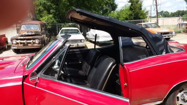 MONTERO RED WITH BLACK VINYL BUCKET SEATS & NEWER BLACK HEAVY DUTY VINYL POWER TOP
