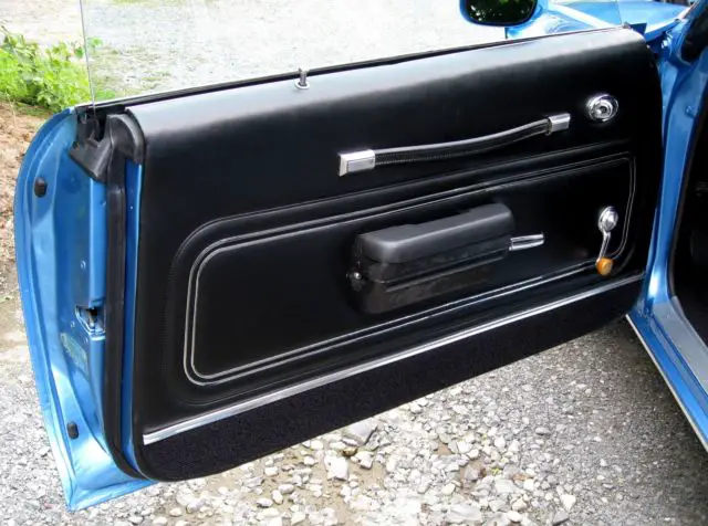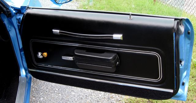 The body is arrow straight with crisp body lines. The paint/body was painstakingly Professionally completed over 2 years time with expensive mirror-glass Medium Blue Metallic Urethane 2 stage Base/Clear coat paint (never been in rain or wet since completed). All the chrome, trim are in excellent condition (the emblems were intentionally left off the car but are included in the sale in excellent shape). It retains the original Rally wheels with new Eagle ST radials truly a striking Appearance. The rear wing and sport mirrors were added. The original Black Buckets seat interior is very nice with the original front seats being redone, new carpets, dash was recovered with upgraded orig clock was upgraded to an orig factory tach, back seat is original, factory console, all the ac duct work plumbing remains intact. The chassis, original floors, trunk pan are all solid zero rust. Engine compartment is super clean.