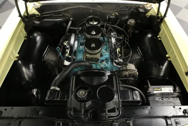 Show and go. This car is ready to do both. And it will probably need that big 'ol trunk in order to carry all the trophies it will gather up along the way. This car still has its original engine and has been restored right with a binder full of paperwork documenting the job, as well as several GTO restoration guide books that were used as reference along the way. If you have been looking for a well-done GTO, you're done looking. Check it out. First impressions as you approach this car are stunning. There is an aggressive rake to the chassis. Before you even get close enough to see the details clearly, you can tell that the body panels line up nicely and it all looks tight and right. The chrome all looks like new as does the polished stainless around the windows. Mayfair Maize paint is the factory original color and as you get closer, you can tell it's near perfect. The view from the front is awesome. That big yellow hood with the double scoop flows down to the split grill between those classic vertical quad headlights with a GTO badge on the right. Down the side you can see the proper GTO badging on the front and rear fenders. At the rear, Horizontal lines of chrome dressing the taillights and the panel between them give a super clean look to the back of the car, and there is more correct Pontiac and GTO badging. Open the door and you will immediately see that the fit and finish of the interior is just as outstanding as the outside of the car. Like the paint, it is the factory correct Black that the car was delivered in new. The door panel has a GTO badge at the top front with chrome piping across the top and bottom. The seats have been wonderfully reupholstered in diagonal pleats with the Pontiac Arrow embossed into them. Nice. A two-spoke steering wheel with a half round horn ring has a Sun SuperTach mounted to the column just behind it. The dash is super clean with stock gauges mounted in a wood grain panel and control knobs mounted in a chrome trim panel below it. The Hurst shifter for the 4-speed manual transmission falls easily to hand and just begs to be stirred around. A trio of auxiliary Stewart Warner gauges as well as a Pontiac manifold vacuum gauge are mounted under the dash to keep accurate tabs on those critical engine functions. Pop the hood up and you will find that precious, original 389 cubic inch motor nestled down in a neat and clean engine bay. It's a rare treat to see those three Rochester carbs, and this Tri-power setup is polished up and tuned up real nice. The chrome tops to their air filters is complimented by a set of chrome valve covers adding their splash of flash to the engine. The rest of the engine iron is painted the correct Pontiac Blue and of-course all the belts, hoses and ignition components are all new. Also new is a complete wiring harness with a laminated diagram included in the documentation. Power flows back through the 4-speed transmission to the rear axle located by trailing arms and sitting on coil springs. The suspension both front and rear is tight and right with sway bars at both ends helping this car handle nicely too. The rubber meets the road through 215/70R15 Red Line tires mounted on silver steel wheels with polished trim rings and center caps. This is a first class restoration of a numbers matching car. There is a pile of documentation that goes with it, and a pile of smiles it will generate when you take it out and about.