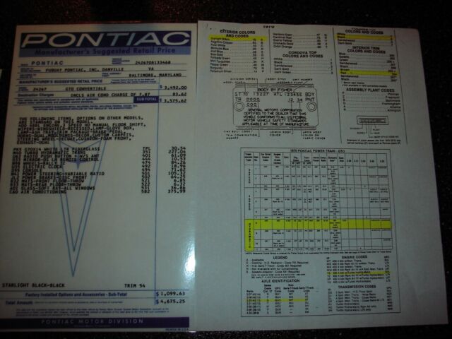 The previous owner said the engine was rebuilt. It does run and sound great, but I see a lot of original fasteners and hose clamps. Maybe it was a factory replacement or it was done early on. I cannot make out the serial number (it is very faint). It is a YS block. So to be safe consider that it is not a number's matching engine. The transmission is number's matching and there is a picture of the serial number on it. The exhaust looks original with original style mufflers and exhaust tips with the factory part numbers stamped in them. The GTO also has its original 14" Rally II wheels.