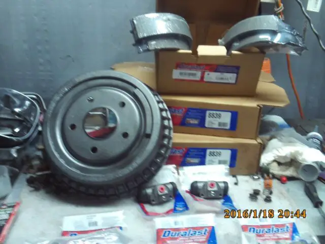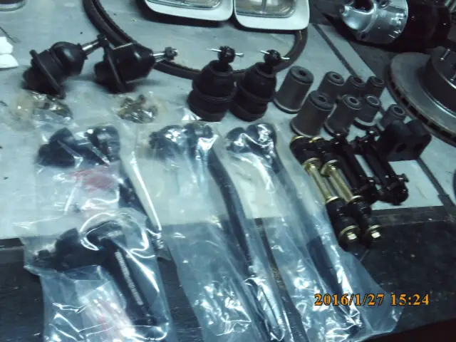 ALL NEW PARTS HAVE BEEN INSTALLED CALIPERS,ROTORS,INNER&OUTER WHEEL BEARINGS AND RACES,GREASE SEALS NUTS COTTER PINS AND NEW SHINNY GREASE CUPS OF COURSE!!ALSO NEW SHOES,HARDWARE,NEW DRUMS, WHEEL CYLINDERS SEALS,GASKETS,WATER PUMP.POWER STEERING PUMP,ALTERNATOR. WELL YOU GET THE IDEA OF WHAT I WAS DOING FOR MY OWN PERSONAL CAR THAT I WAS GOING TO BE DRIVING AND SHOWING OFF.