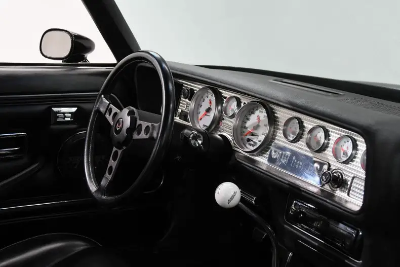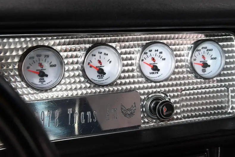 Started with a 37,000 mile rust free survivor in excellent condition. I know, I sold it to him. He transformed it one of the hottest Trans Ams I've seen. Claimed over $90,000 invested, includes a pile of paper work. Less then 200 miles since finished. EXTERIOR: This is a virgin rust free, damage free car with all of it's original metal. It was completely taken apart and blasted to a bare shell including the underneath. They even stripped the undercoat... from the rear wheel wells. Has an incredible black paint job that is literally like a mirror, you could shave in it's reflection. The jambs are just as slick. Sill plates are new and shiny. New weatherstrips. All the body gaps line up real nice. New decals, the siver-red look hot. Staggered size polished aluminum wheels- 17x8 in front, 18x9.5s in back. Has performance tires. INTERIOR: It actually has it's original interior with some nice upgrades. Great looking electronic gauges that light up blue. Has new handsfree, bluetooth stereo system with Shockwave speakers, amp and subwoofer. New power window conversion. Premium Lloyd floormats. Has factory tilt formula wheel and power trunk release. ENGINE COMPARTMENT: It's beautiful! Full of polished aluminum parts. $6,967 spent on the performance built and balanced 455. It's Dyno tuned at 473 hp and 588 lbs of torque. Has itemized spec and Dyno sheets. Has Eagle rotating assembly. Howard's cam, roller lifters and double roller timing chain. Edelbrock aluminum D-port heads. Stainless rockers, ARP bolts. Has Edelbrock intake with 850 Quick Fuel carb. Premium fuel lines and fittings. Wilwood aluminum master cylinder. Tru Trac billet bracket and serpentine pulley system. Billet Specialties power steering system. New Vintage Air Gen IV heat and air system. Billet hood hinge kit. Has Ron Francis aluminum radiator and overflow bottle with electric fans. TRUNK COMPARTMENT: Under the liner is perfectly clean original metal with original spatter paint. It has been carpeted and and upholstered panel hides the amp and subwoofer. Battery is relocated to the trunk with a billet hold down. Bottom of the trunk lid and jamb are painted slick. UNDERSIDE: Spotless. Super clean original floors were blasted and painted. All the factory seams, spotwelds and even the lower 1/4 panel drain plugs are mint. Upfront is all new upgraded QA-1 suspension with tubular control arms, fat swaybar and adjustable coil over gas shocks. In back it has Detroit Speed suspension with tubular upper and lower control arms and adjustable coil over gas shocks. Competition Engineering frame connectors tie the front and back together. Wilwood 4 wheel disc brakes system with drilled and slotted rotors. Bottom of the motor is spotless, has extra capacity oil pan and high torque starter. $4,616 for brand new TKO600 5-speed, custom supports, linkage, stage 1 Ceramix clutch kit, bell housing, flywheel etc. Has race balanced driveshaft and solid u-joints. 3.42 posi in back with aluminum cover. Custom exhaust system with Flowmaster mufflers. This car is exciting! Everybody that sees it, loves it. The builder did a great job making it look and perform incredible. I have bought and sold many cars with him, he loves building them. Once he is done he is ready to do the next one. Whoever buys his car benefits from all his time and money he invests. This is a perfect example! I, Jay Grams, take pride in personally writing the descriptions for virtually every car for about the last 30 years now. A significant amount of effort goes into fact checking. What I am offering is my professional impression of the vehicle. Our salesmen are happy to assist with descriptions and making sure your questions are answered. One great suggestion is letting us do a walk around video that explains the car's condition in detail. Don't be intimidated, contact sales now for a no pressure, no hassle experience! 815-323-6536 9-5 central Answered ASAP Vintage air system Power steering 4 wheel disc Custom suspension 3.42 posi Power windows Tilt formula wheel Custom gauges Stereo system Console Floormats Custom wheels