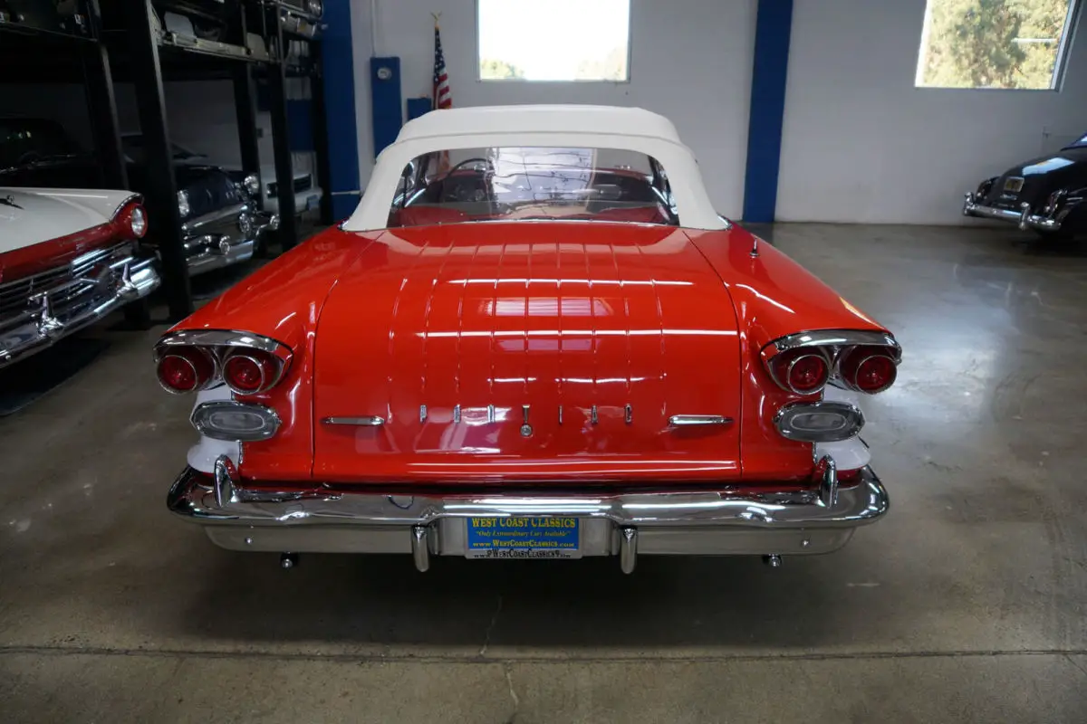 West Coast Classics are proud to present an absolutely exceptional and completely rust free example of this recently both mechanically and cosmetically restored, and with only very few miles since being restored, of a mostly all original 1958 Pontiac Chieftan 370/300HP V8 3x2 BBL Tri-Power V8 6 passenger Convertible in a beautiful and extraordinarily striking two-tone 'Rangoon Red & Patina Ivory' color and with an absolutely beautiful all new 'Red & White' interior and with a new White power soft top! One of only 7,359 built in the very last year of production.