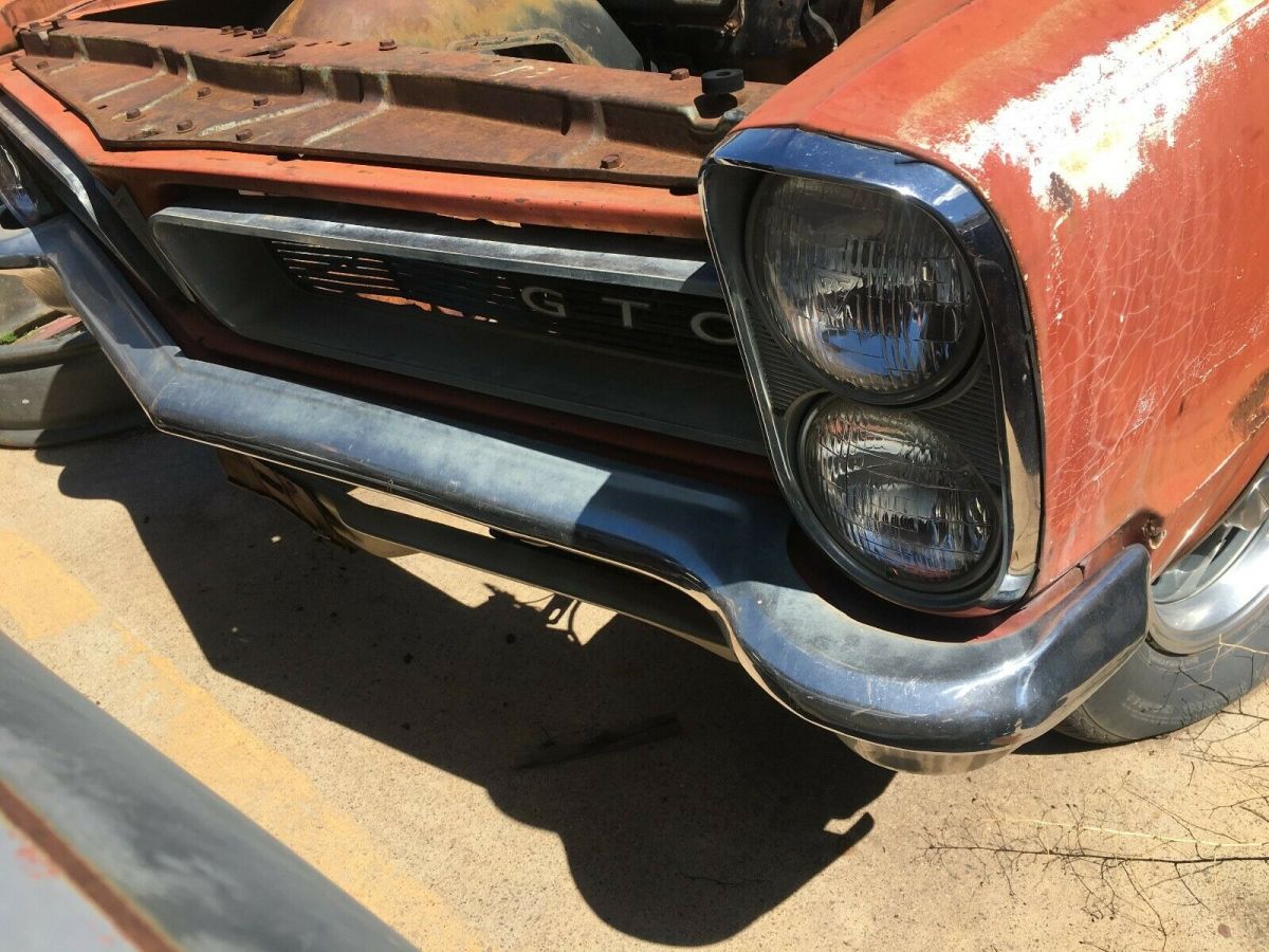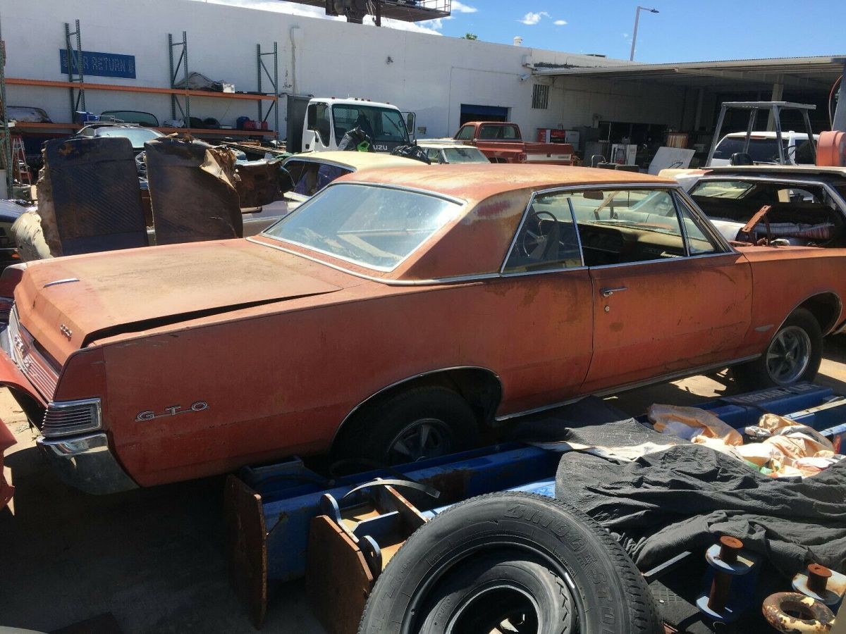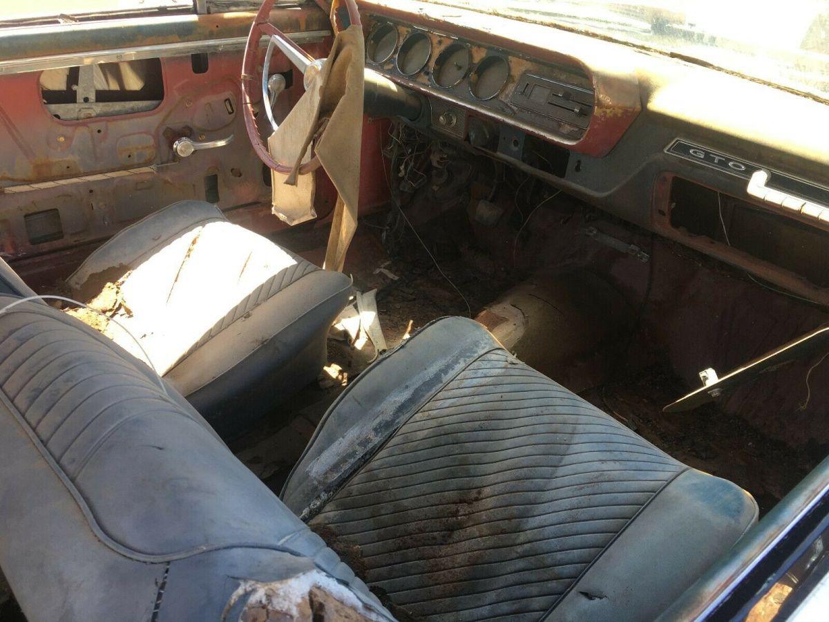 1965 Pontiac GTO hardtop. Car is very rust free except it needs a new trunk and has surface rust, no holes. Vehicle was originally a 389 4 bl, 4 speed. Interior was originally blue and front and rear seats are included. Car is for sale locally and sale will be closed if sold. Vehicle will be made mobile for transport with tires. If 3rd party is used for transport please be sure they are able to transport vehicles that are non-running. If 3rd party transport is used I will assist with getting the transport completed. As the pics show i