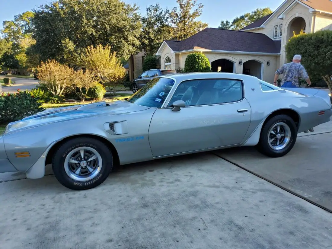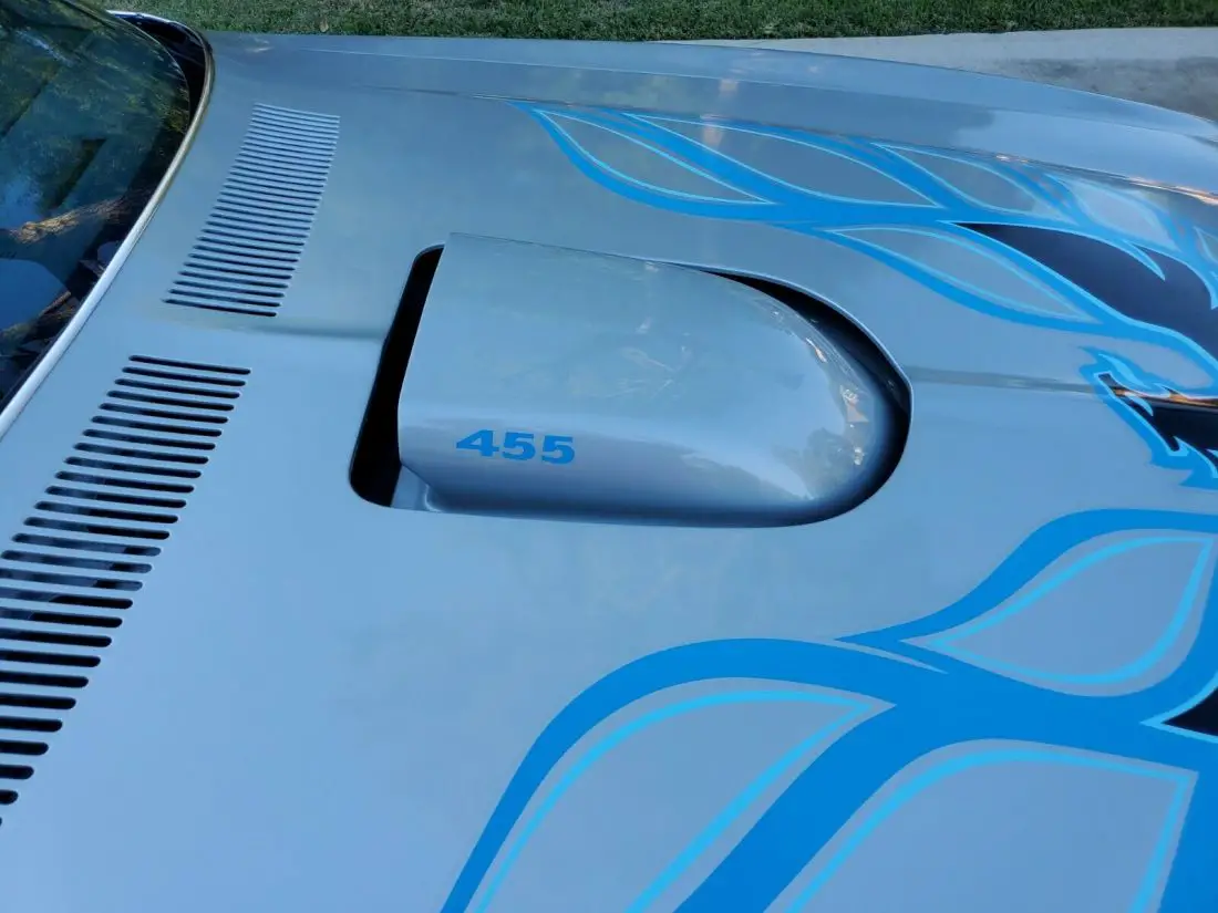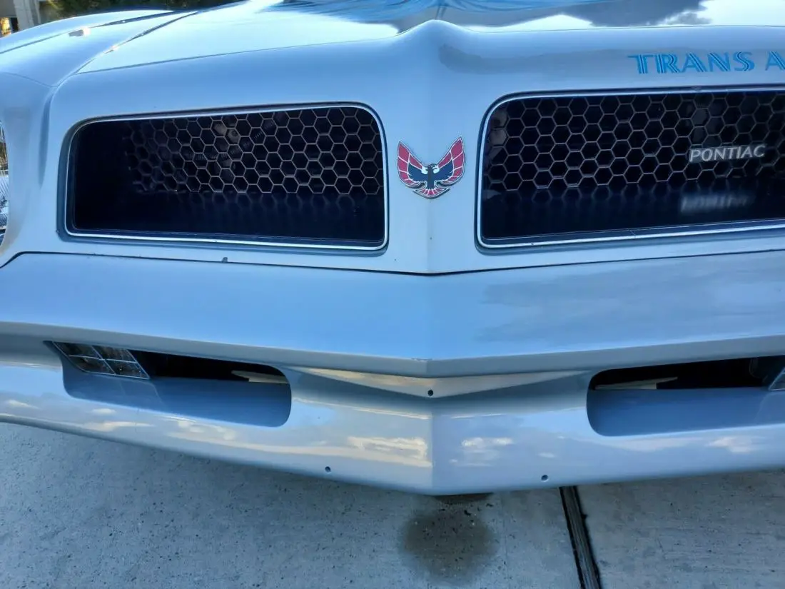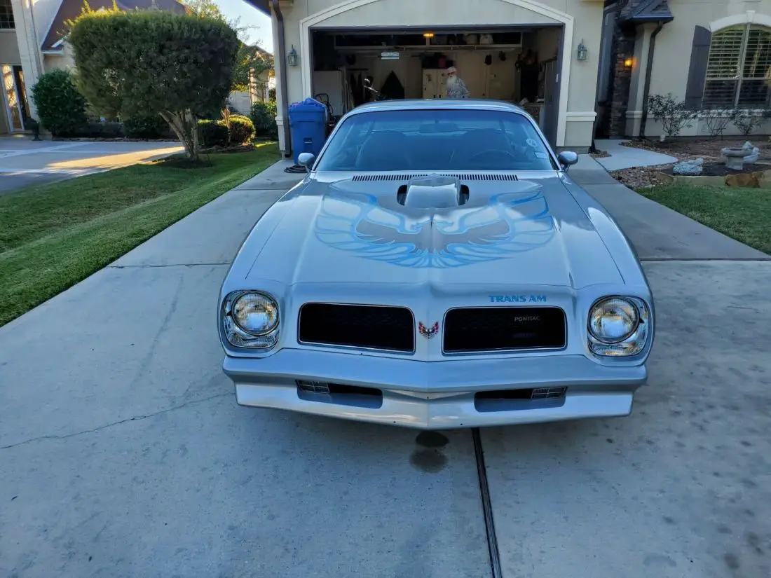 This 1976 Sterling Silver Trans Am is very unusual as it has a blue interior in excellent condition. Most Sterling Silver Trans Am were equipped with a black interior. It has a 4 speed transmission, power windows, radio, 8 track stereo, air conditioning, tilt steering wheel, front and rear seat belts. The tires have approximately 300 miles on them, full size spare tire in trunk. the vehicle is mechanically sound.