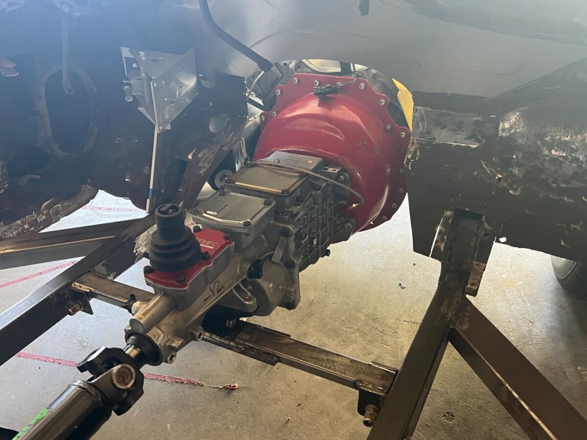 TKO 5spd Manual Transmission, Lakewood scatter shield. Light weight Alloy Flywheel, Hays street/strip HD Clutch, Ram hydraulic Throwout Bearing.