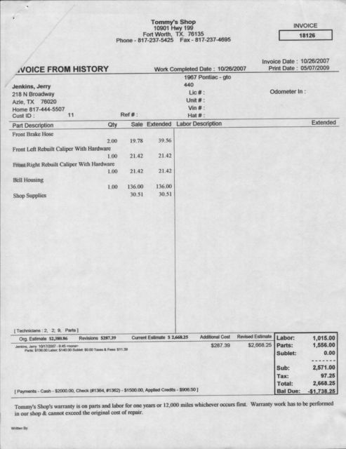 Here is a nice 1967 Pontiac GTO having a commercially rebuilt 400 V8 engine having a "WA" block code.with a "new" four barrel carb and a rebuilt four speed manual transmission. This car has had a ground up restoration starting with a purchased premium long block engine, rebuilt Muncie 4 speed transmission, replaced brake lines and hoses, remanufactured brake booster,new body mounts, frame cleaned and painted, vat and cleaned intake, resurfaced flywheel, remanufacturedsteering gear, alternator and brake calipers. New coil springs, idler arm, center link, tie rod ends, control arm bushings, ball joints shocks, front hubs, outer and inner wheel bearings and clutch. Many other small parts as shown on garage receipts.