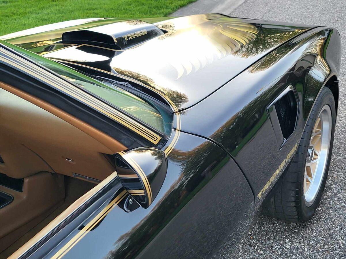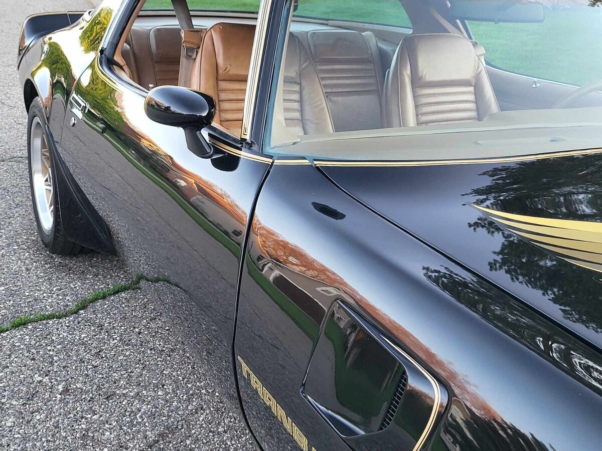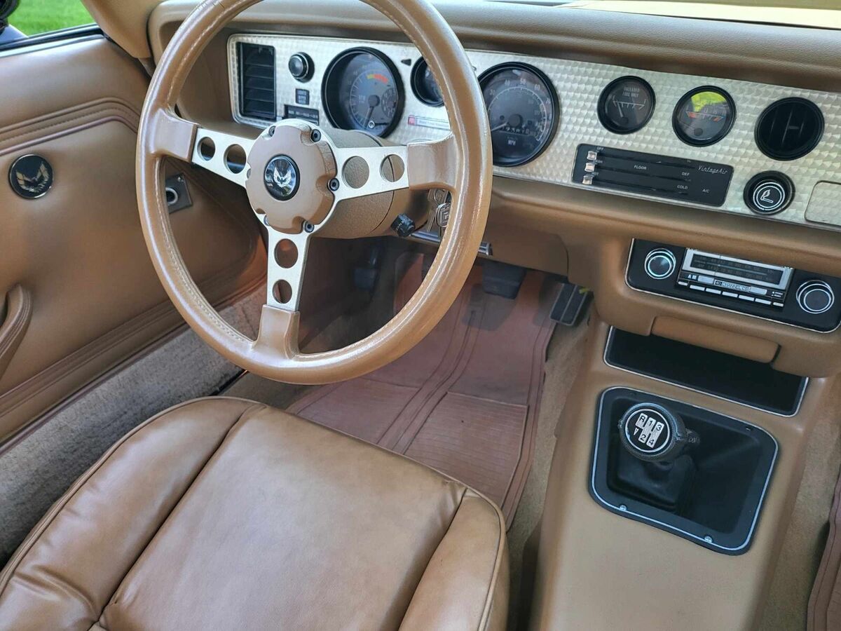 Immerse yourself in the classic charm of the 1979 Pontiac Trans Am, a true icon of American muscle cars. It boasts a sleek black exterior paired with a complementary tan interior, creating a timeless aesthetic that's sure to turn heads. The car features a potent Pontiac 400 engine, coupled with a manual transmission, delivering a hands-on driving experience that's both exhilarating and nostalgic. Equipped with amenities like air conditioning, alloy wheels, and a rear spoiler, this Trans Am offers both comfort and style. The interior is thoughtfully designed with safety in mind, including back seat safety belts, and it can accommodate up to four occupants for a fun and safe ride. With a clean vehicle title and a low mileage of just 300 miles, this classic car is ready to hit the road with its next proud owner.*Originally Nocturne Blue with tan graphics and tan wheels, this car has ONE repaint in it's entire life just done in beautiful Black paint one year ago! Car was completely disassembled for paint and restoration. Always a RUST FREE central Florida car, sold new in Panama City Fla. All original body panels and floors! *Originally an automatic shift upgraded to 4 speed and Pontiac 400 (close to 400hp rebuild) using the motor and trans out of an original 68' GTO donor that was upgraded to an LS motor. All correct PONTIAC parts were used in the conversion to 4 speed.New "Vintage A/C" (orig. A/C car) works awesome! Upgraded wheels are taller than originals, and the car was lowered 2" for a race appearing stance!Handles excellent and has a lot of power. Highway gearing allows you drive 80 on the freeway at just under 3000rpm. 80mph feels like 55mph, and has top end power to spare!*PHS* included in pictures for exact orig. build of this true Trans Am. (Orig. CB Radio car, pwr everything, loaded)You may set up the transportation of the vehicle to your location once the funds are cleared and secured on this end.Ask questions I will answer honestly. Come see the car in person, there is nothing to hide! My son who is an electrical engineer, and myself spent 3 years and approx. $32K restoring this awesome car. We will include all receipts from the complete restoration in the sale. Nothing out there is 'perfect' this one is very close!