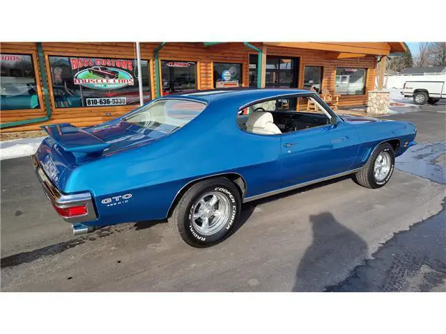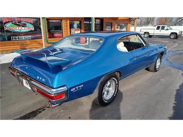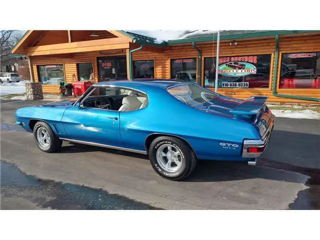 Vehicle Original VIN : 2D37Y2P142This is a "Super Cool" 455 GTO, nice clean body, done in Medium Blue Metallic, basecoat clearcoat, sanded and wheeled smooth, new tinted windshield,; all other glass is factory original softray tint in very good condition, retains all original window stainless in excellent condition, new weather stripping and window felts, factory dual sport mirrors - driver side is remote, original grills in excellent condition; as well as headlight bezels, endura front bumper in very good condition, original wheel well and rocker moldings in excellent condition, re-chromed original rear bumper, judge wing.Factory White bucket seat console interior, original dash in excellent condition - no cracks, original instrument cluster - showing 97,000, nicely outfitted with AM/FM/CD Clarion stereo, 3 spoke sport wheel; also have factory original wheel, headliner and sail panels look like new, original front and rear door panels in excellent condition, original front and rear seats also in excellent condition, factory front and rear seat belts with shoulder straps, original center console and correct shifter, new carpet and floor mats.Under the hood we have a fresh built era correct 455, performance cam, roller rockers, set of 96 cylinder heads, Edelbrock aluminum intake, dual feed Holley 4 barrel carb with electric choke, electronic ignition, set of factory RamAir cast iron headers into 2 1/2 inch dual exhaust out the back with dual tips, heavy duty radiator with correct shroud and fan, power steering, power disc brakes, this strong running 455 is backed up with a 400 turbo trans, 12 bolt posi rear, F41 suspension package.Rides on a set of American Racing Torq Thrust wheels and new Cooper Cobra tires 225/70/15 up front and 15x8 out back with 275/60/15.This "Cool" GTO is ready to cruise and enjoy.