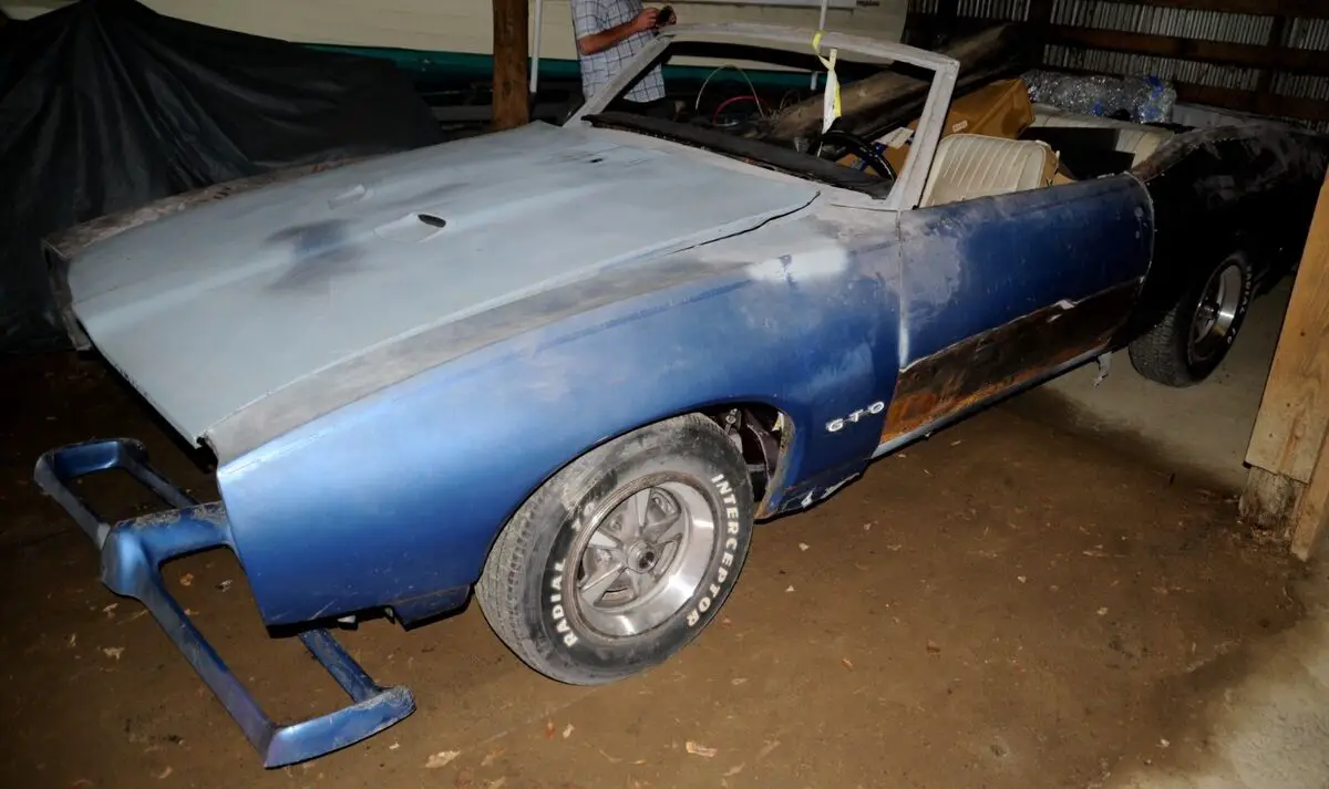 1969 GTO convertible project. Car from a collector's estate. I believe the engine and transmission has been rebuilt. The front suspension links are newer and non-original. This is a project car that requires expert intervention, but apparently has some potential. The car is located near Buffalo, NY. I'll do what I can to answer the questions of seriously interested part.