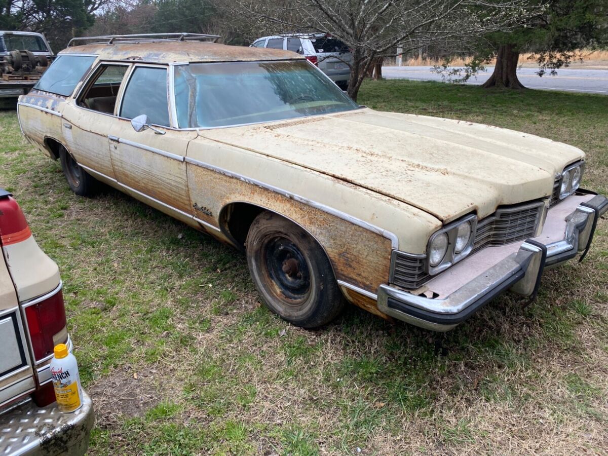 1973 Pontiac Safari Round Back Station Wagon. Great for Parts or Demolition Derby. Not running, no keys or no title. It has a 400 4-barrel engine. Has rust in floor boards, around rear glasses, around windshield, bottom of front fenders and bottom of rear quarters.It has nice rockers. Frame is nice and it rolls freely. I have taken pictures the best I could have bottom of car. All you derby guys know what to do with it. If you have any questions I will answer the best I can. Car will need to be paid for in full within 3 days of auction end either through eBay payment or in cash in person. Will need to be picked up within 15 days of auction end or will be relisted. It is located in Creedmoor NC 27522. Thanks and God bless.