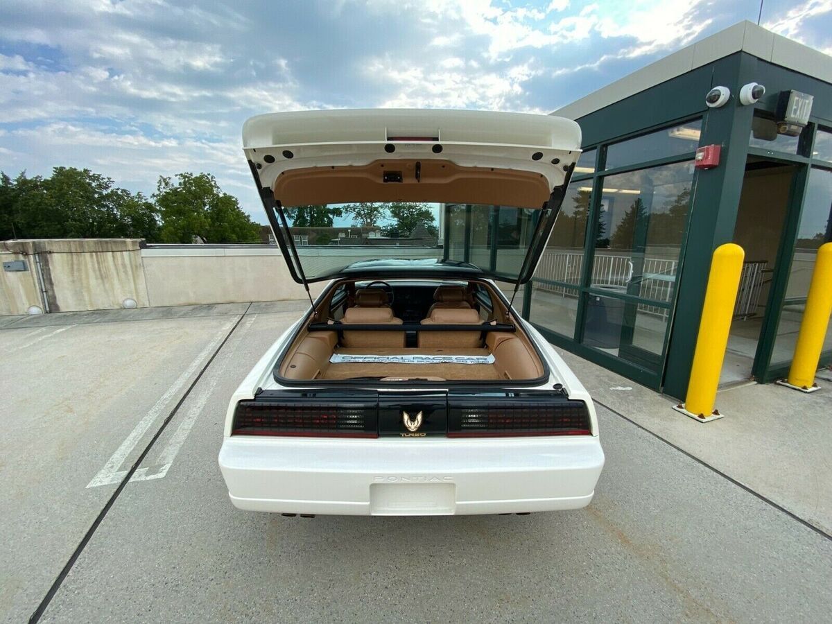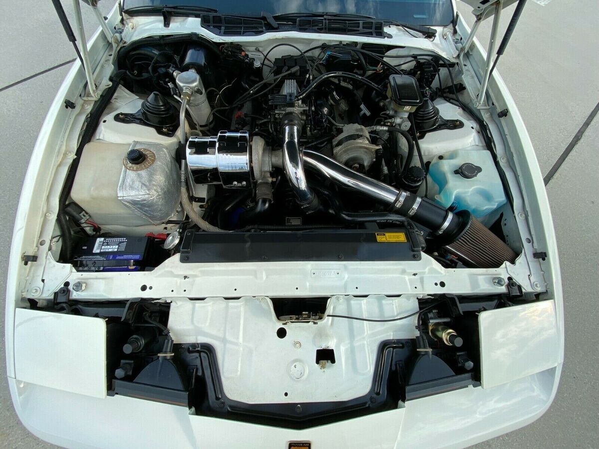 Beyond the all-white livery, all Turbo Trans Ams got an aero package, a performance suspension, and upgraded cooling. Power was sent to the ground through a four-speed automatic with a limited-slip rear differential. Most were equipped with T-tops as this one.