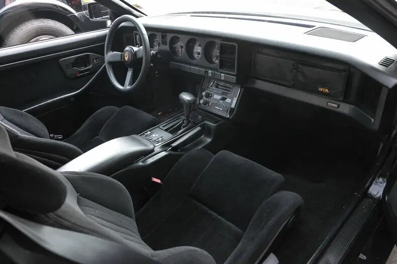 This 1987 Pontiac Trans Am GTA is a classic car that is perfect for any collector or enthusiast. It is a TRUE Survivor with only 22,009 miles! Please refer to the pictures to verify the paint is absolutely fantastic...the interior is as well. It comes with an original fuel injected 5.7 Liter engine and automatic transmission. This GTA color combination is rare triple black with original Factory option Paddle Mirrors from the factory. The interior features black cloth seats, power windows, climate control, AM/FM stereo, rear spoiler, cruise control, tinted rear windows, top sound system, tilt steering wheel, power steering, folding mirrors, air conditioning, independent and adjustable rear seats, alarm, power locks, electric mirrors, and catalyst. The car also has alloy wheels and a great exterior color of black. I am the second owner and only selling it because we have sold our home and moving with no garage space to store it in. I have replaced the shocks, struts, A/C condenser, and trunk, door, and window seals all with OEM parts replacements. I also have the owners OEM owners manual, complete shop manual, and body shop manuals. Everything works properly...NO SURPRISES HERE! This Pontiac Trans Am GTA is a must-have for any car lover.