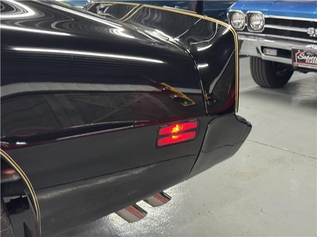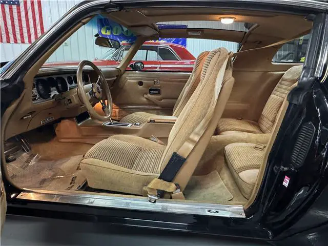 This Trans Am has been meticulously maintained and has a rust free body. It looks amazing in its factory original color, Starlight Black. The paint finish has been polished smooth and glossy. It has the correct gold bird decal and pin stripes and they are in excellent shape. It also has new weather stripping and window felts. The taillights are like new. It rides on its original Snow Flake Rally wheels with correct center caps and lugnuts. The wheels are wrapped with a set of BFG T/A radial tires.