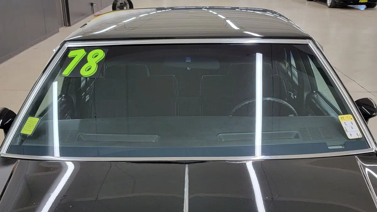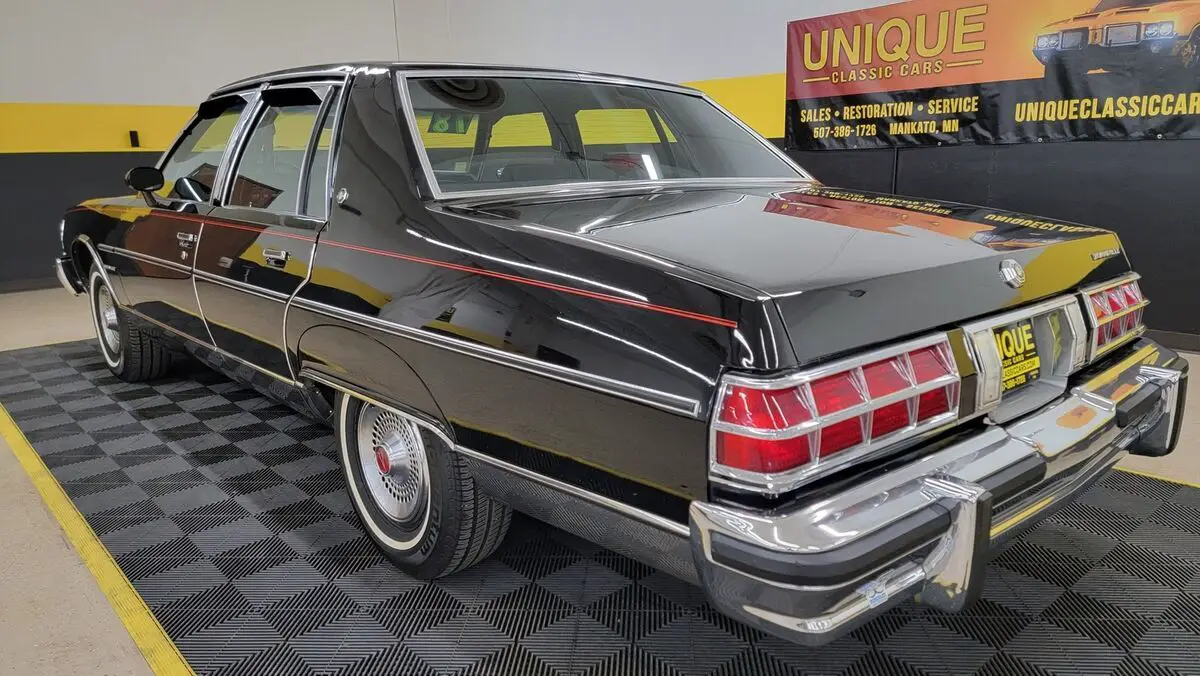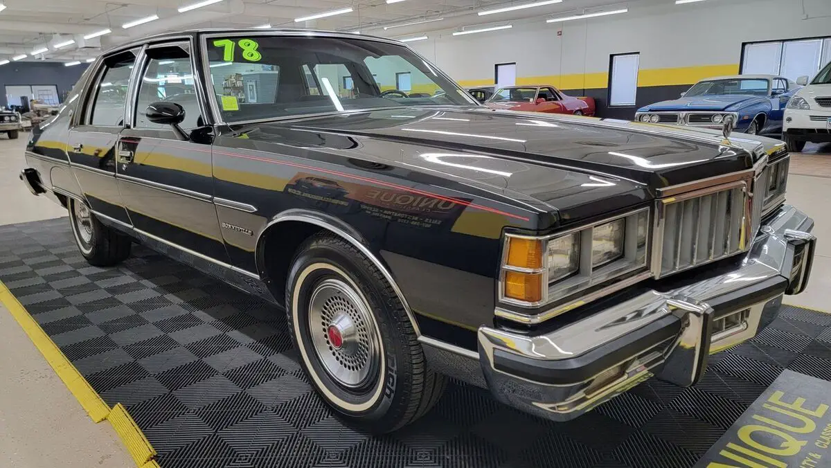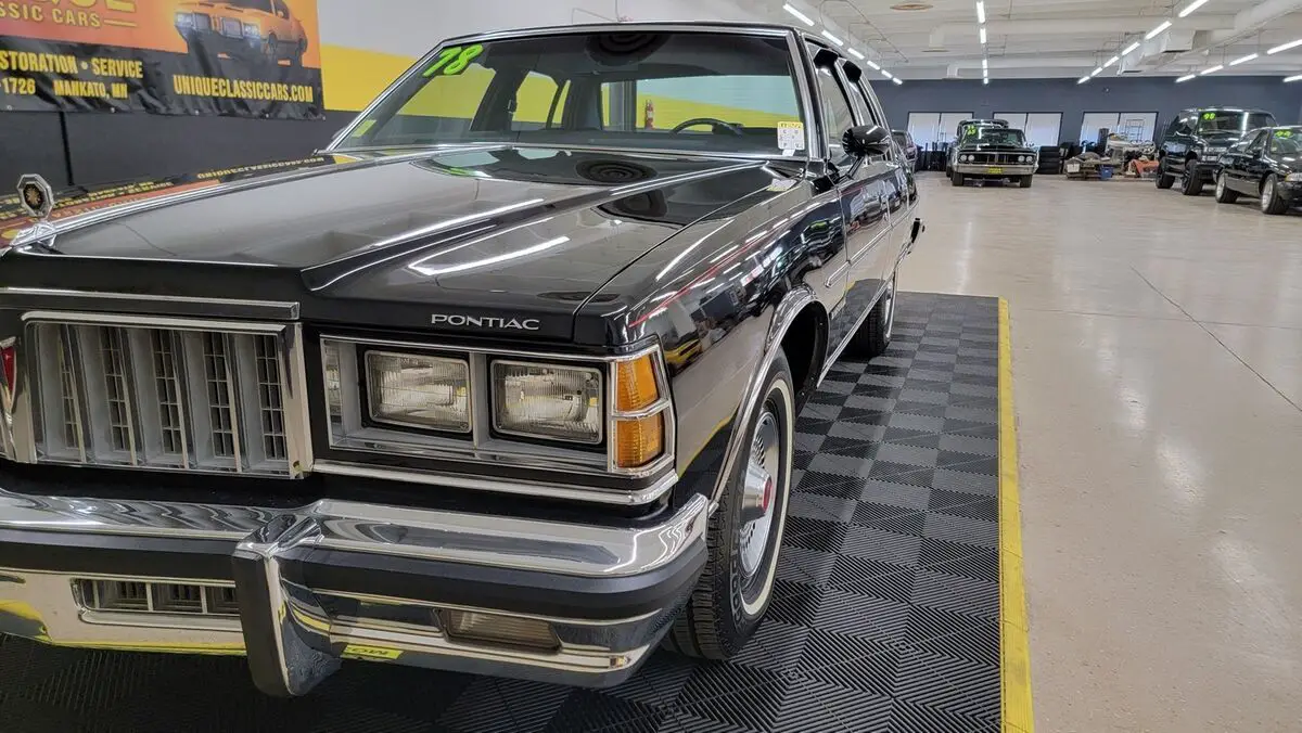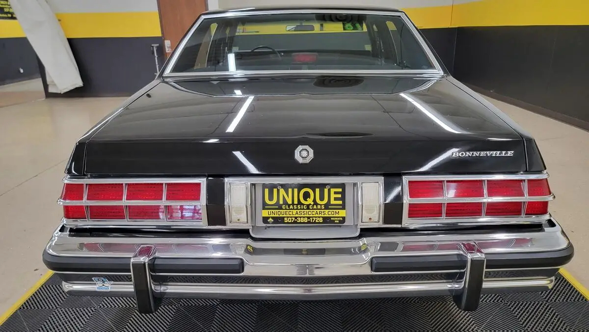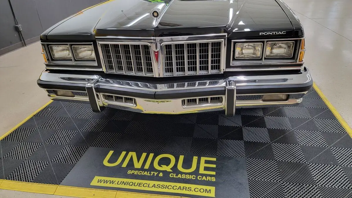 1978 Pontiac Bonneville in Black paint with red pinstriping. This is an original mile car with 26,874 on the odometer! the Pontiac 350 V8 under the hood with a TH350 auto transmission. Equipped with power steering, power brakes, and a/c. A/C BLOWS COLD! Paint has a nice shine overall and does show some imperfections in areas. This one has been undercoated along the line as well as rust inhibitor applied to the doors/lower rockers. Riding on Pontiac wheel covers and white wall radial tires. The tires are getting old, may need to be addressed before longer trips. Black cloth bench seat interior is in great shape. Recent service: coolant done and new exhaust cat back. Aftermarket am/fm/cd stereo has been installed in the dash.