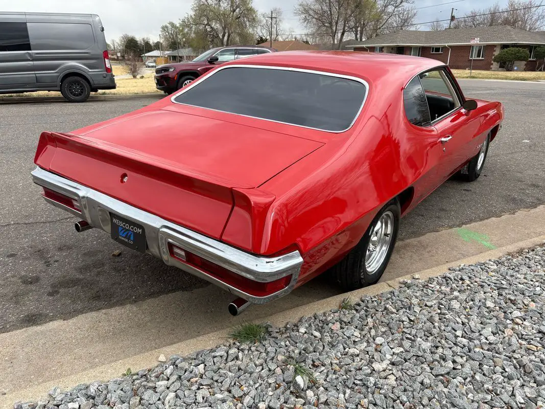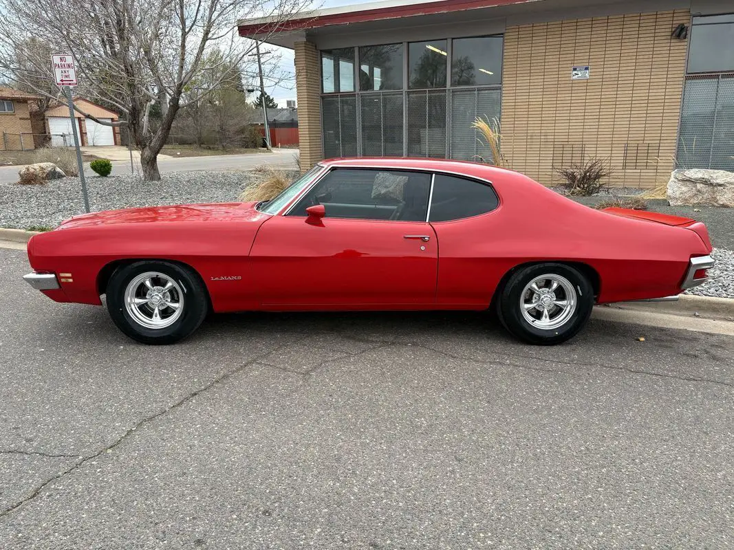 1972 Pontiac Lemans coupe finished in red exterior over a cream leather interior. This car has less than 1000 miles on the build, including a new 400ci V8, Holly sniper EFI fuel injection, 5-speed Tremec transmission, wilwood big brake kit with drilled & slotted rotors, aluminum radiator with Performance fans, custom exhaust, and all new suspension, including control, arms, tie, rods, and Viking coil overs. Also has brand new tires on brand new chrome wheels. On the inside, youll find that it has upgraded Recaro seats, Bluetooth audio with all new speakers throughout and a custom Digital gauge cluster. This is one very fun car to drive as its quite quick and gets lots of heads to turn when youre driving down the road. Call Weisco Motorcars for additional information or schedule an appointment time to view the vehicle in person. VISIT US AT OUR SHOWROOM LOCATED AT 3815 Grape St Denver, CO. 80207 ! Financing available wac. (loans for instate buyers with credit unions for newer cars) OLDER cars are done with jj best banc with terms of 24-84 months. Visit()for more information and pictures. Terms of Sale & Auctions for all vehicles sold at Weisco Motorcars We strongly encourage inspections before purchasing to avoid any misunderstandings or representations. All used vehicles should be assumed to have some degree of wear. No Vehicle is perfect for everyone. Despite our efforts to verify a vehicle's mechanical condition; we are not able to warranty a manufacturers workmanship or previous owners diligence in care or use. Weisco Motorcars does sell all vehicles 'AS IS'. We have described the above mentioned vehicle to the best of our ability. However, with all pre-owned automobiles, the condition is subjective. Please be advised that no oral or written statements concerning any vehicle constitutes a representation or warranty of the condition of the said vehicle. We will not hold a vehicle for you without a $1000.00 non-refundable deposit. If you want the vehicle give us a deposit to hold it for you. Unless we have some documentation we always sell classic cars as mileage exempt. That means we do not know the original miles. What we list in the ad is what the odometer currently reads or is based off rebuild information of the engine and or body/chassis. Advertised price includes D&H of $298.50 paperwork fee / dealer handling fee. The D&H Fee will include a 60 day temporary tag for vehicle use. All sales are plus Sales tax, title fee, E-test All sales are final with car being sold where is, as is. All above terms and conditions are applied to vehicle sales, whether through E-bay or otherwise. We ship nationwide. Please call or email for information about delivery and shipping options. Flying to Denver via DIA airport? We will be happy to pick you up!
