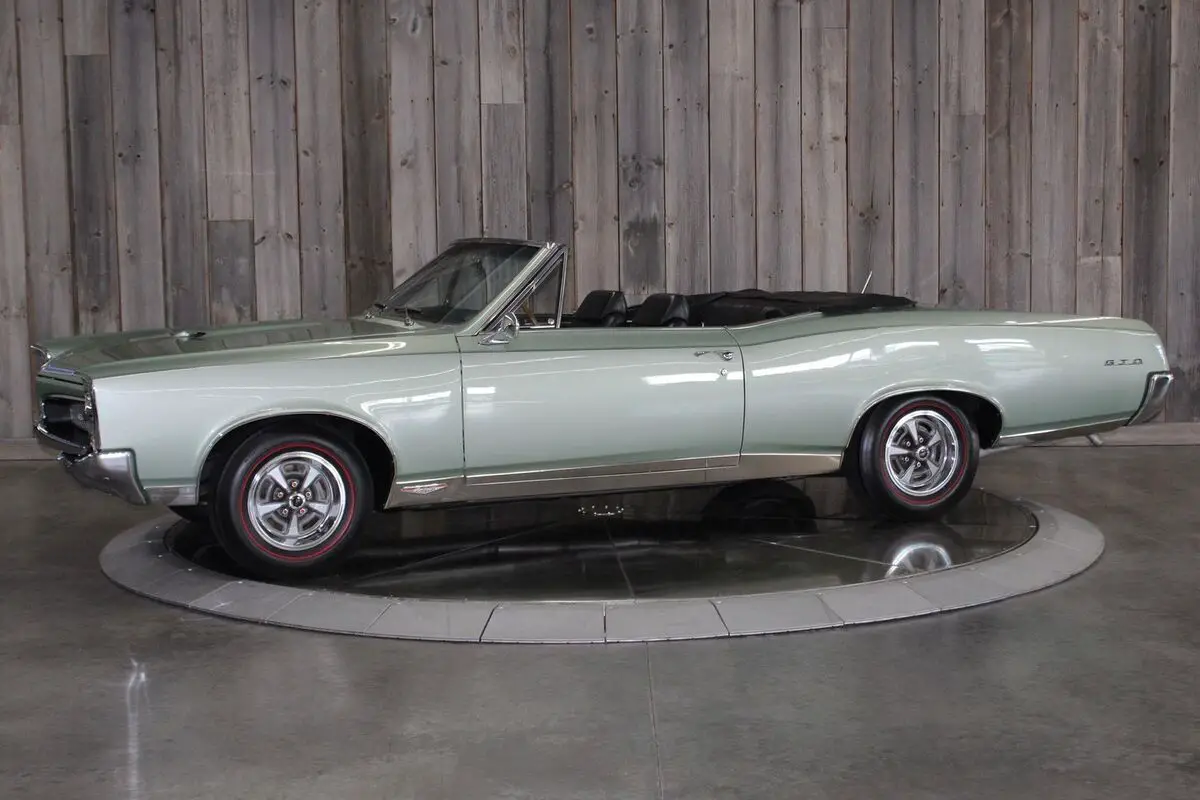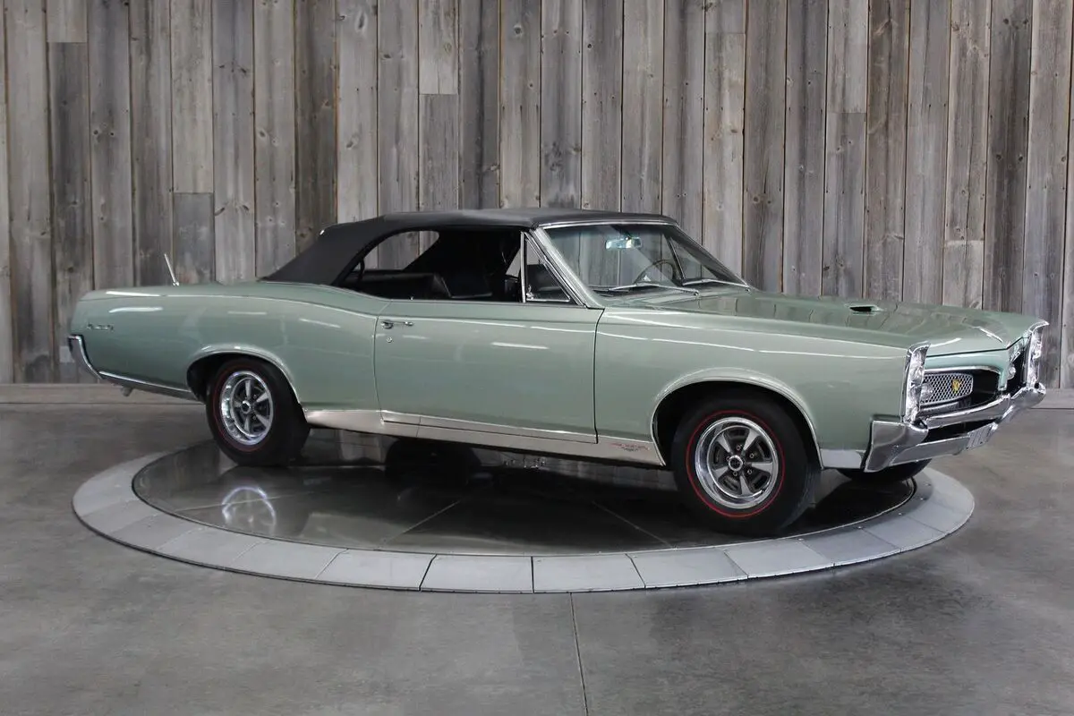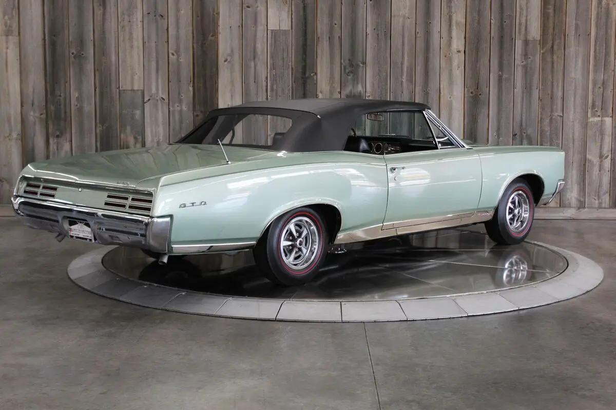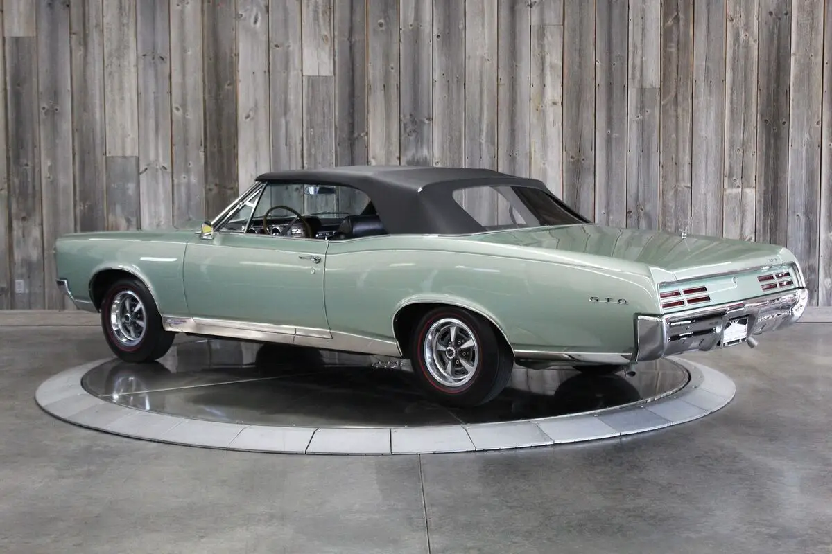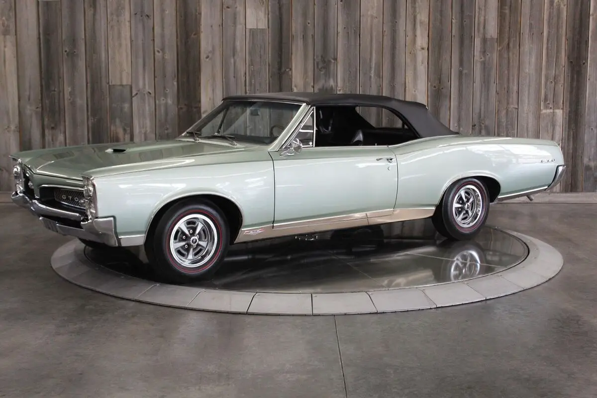 ’67 PONTIAC GTO CONV.– This show quality Goat retains its original numbers matching 400/360hp HO optioned engine. Linden Green w/Black int. and black vinyl top with matching boot. Older frame-off restoration. It also still has the original 4spd. Transmission. Other original options include - Power steering, power brakes, and power trunk release. Equipped with a black vinyl power convertible top (matching boot) tilt steering column, restored original AM/FM radio, and dual exhaust. It comes with its restored original Rallye wheels and redline radial tires. The car has its original numbers matching engine, correct service replacement carburetor, numbers matching rear end, numbers matching heads, and numbers matching intake. It comes with a reproduction window sticker, PHS documentation, the original owner’s manual, two Gold certificates, and a Silver awarded during the “Pontiac Nationals” cars show, it also comes with a judging sheet from its Gold award. The last owner had the car for more than 25 years. Car built: 4th week of May, Engine stamped # 634826 “WS” .There is an “X” stamped over the “W” beside the “S” but our GTOAA judge/authenticator (who knew the previous owner) knew he was touting the car as a RAM AIR and stamped the “X” over the “W”. The GTOAA judge/authenticator verified you can still see the “W” under the “X”. The GTOAA judge visually determined everything is original as listed. Engine block date 267, Intake manifold date code E157, Transmission # P7E222, Rear end # 125 / 9788647, Service Replacement carb # 7037263 / 1783, passenger side head # E127, driver side head # E117, driver side rear quarter # 236720, passenger side rear quarter #2302007. (Validate entire description for accuracy before bidding/purchasing)