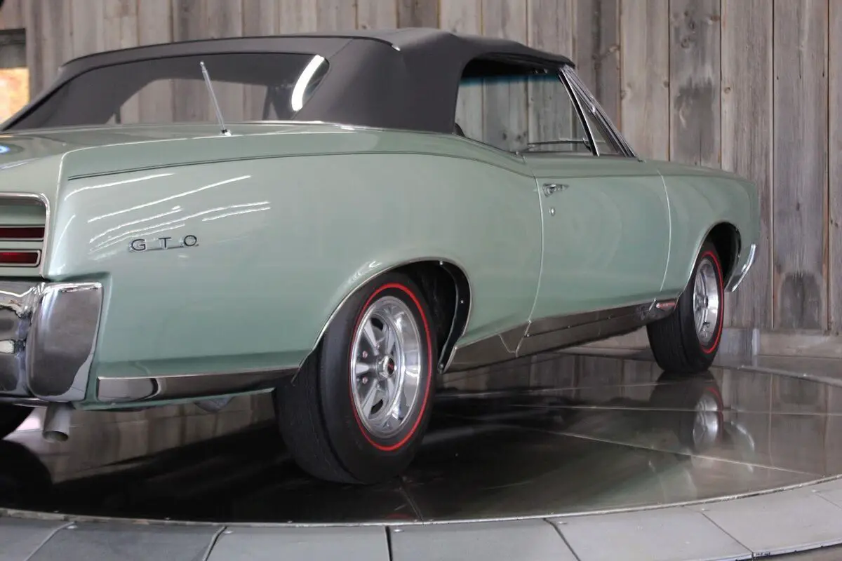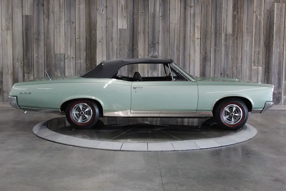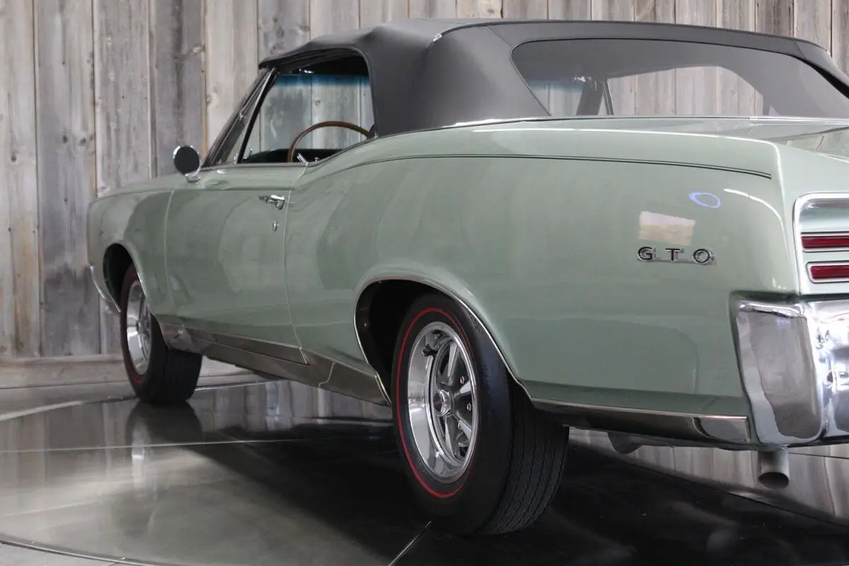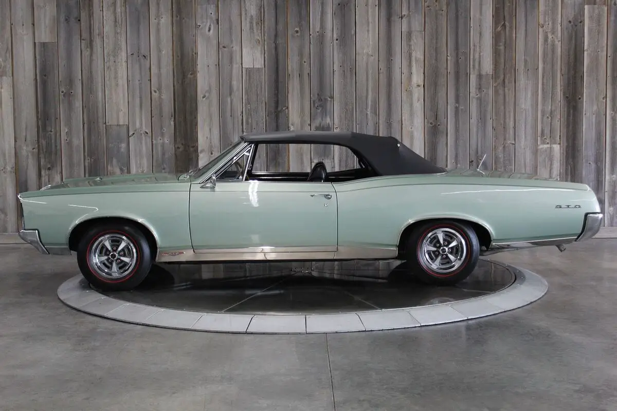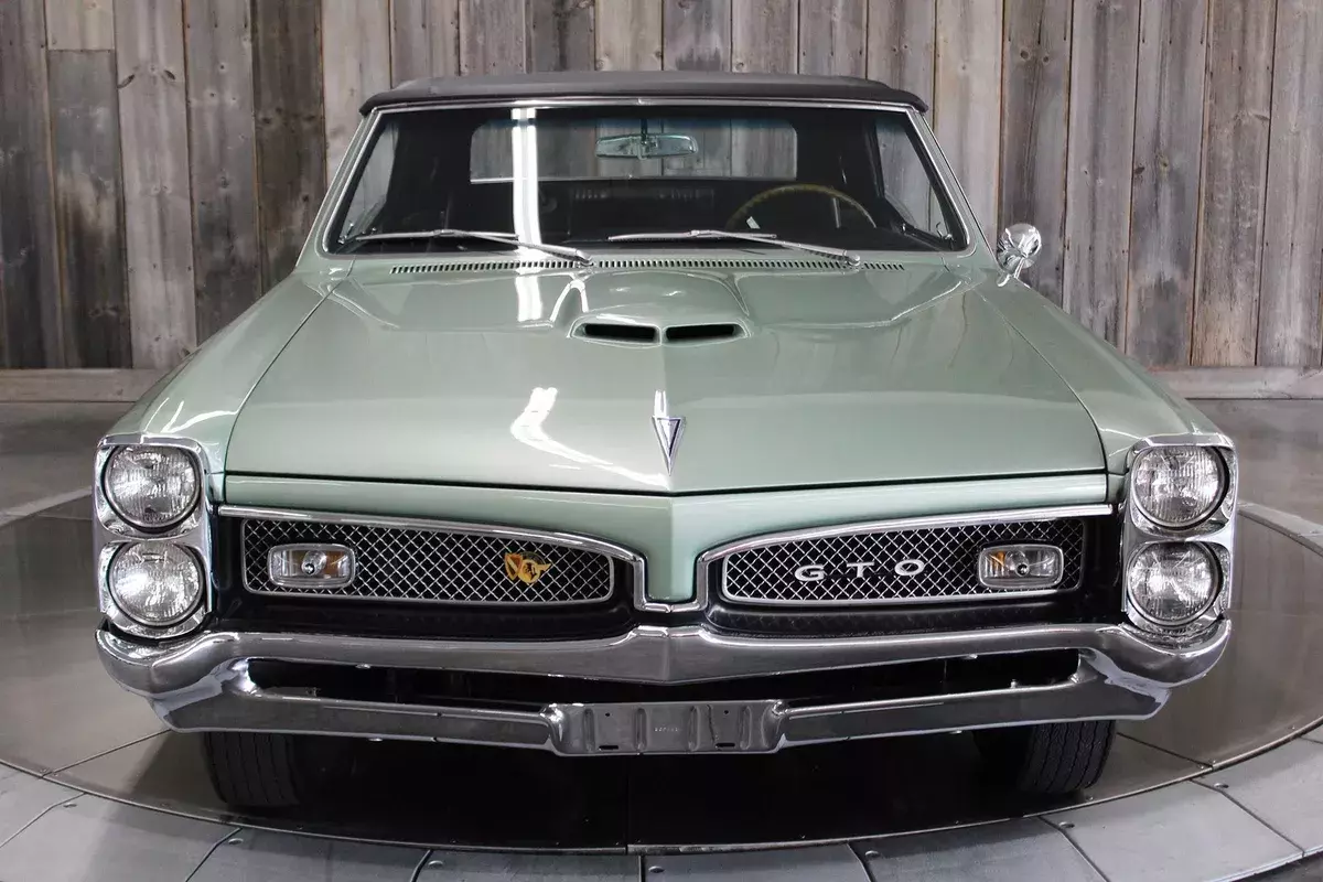 ’67 PONTIAC GTO CONV.– This show quality Goat retains its original numbers matching 400/360hp HO optioned engine. Linden Green w/Black int. and black vinyl top with matching boot. Older frame-off restoration. It also still has the original 4spd. Transmission. Other original options include - Power steering, power brakes, and power trunk release. Equipped with a black vinyl power convertible top (matching boot) tilt steering column, restored original AM/FM radio, and dual exhaust. It comes with its restored original Rallye wheels and redline radial tires. The car has its original numbers matching engine, correct service replacement carburetor, numbers matching rear end, numbers matching heads, and numbers matching intake. It comes with a reproduction window sticker, PHS documentation, the original owner’s manual, two Gold certificates, and a Silver awarded during the “Pontiac Nationals” cars show, it also comes with a judging sheet from its Gold award. The last owner had the car for more than 25 years. Car built: 4th week of May, Engine stamped # 634826 “WS” .There is an “X” stamped over the “W” beside the “S” but our GTOAA judge/authenticator (who knew the previous owner) knew he was touting the car as a RAM AIR and stamped the “X” over the “W”. The GTOAA judge/authenticator verified you can still see the “W” under the “X”. The GTOAA judge visually determined everything is original as listed. Engine block date 267, Intake manifold date code E157, Transmission # P7E222, Rear end # 125 / 9788647, Service Replacement carb # 7037263 / 1783, passenger side head # E127, driver side head # E117, driver side rear quarter # 236720, passenger side rear quarter #2302007. (Validate entire description for accuracy before bidding/purchasing)