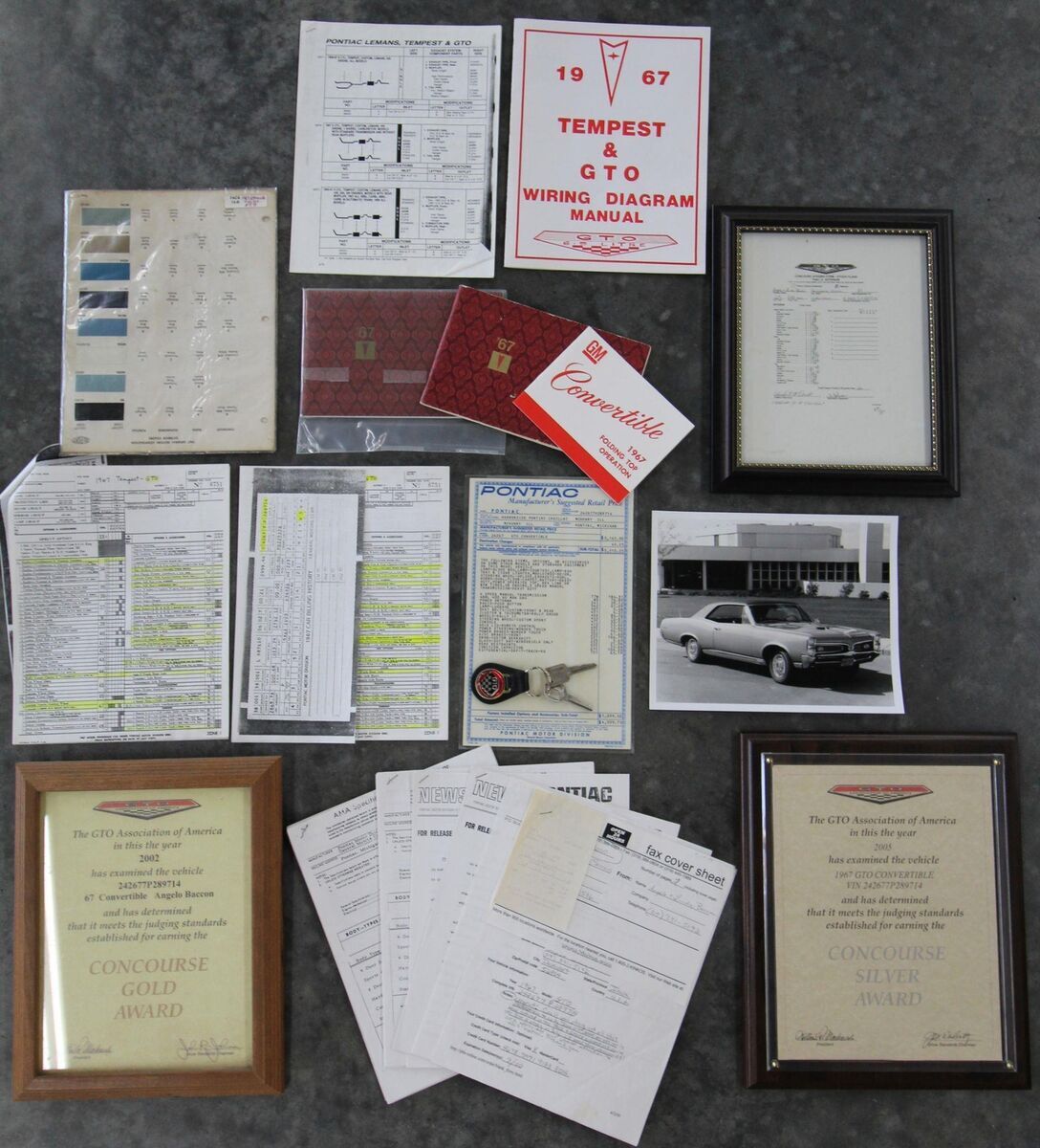 Vehicle Original VIN :563-562-03311712447’67 PONTIAC GTO CONV.– This show quality Goat retains its original numbers matching 400/360hp HO optioned engine. Linden Green w/Black int. and black vinyl top with matching boot. Older frame-off restoration. It also still has the original 4spd. Transmission. Other original options include - Power steering, power brakes, and power trunk release. Equipped with a black vinyl power convertible top (matching boot) tilt steering column, restored original AM/FM radio, and dual exhaust. It comes with its restored original Rallye wheels and redline radial tires. The car has its original numbers matching engine, correct service replacement carburetor, numbers matching rear end, numbers matching heads, and numbers matching intake. It comes with a reproduction window sticker, PHS documentation, the original owner’s manual, two Gold certificates, and a Silver awarded during the “Pontiac Nationals” cars show, it also comes with a judging sheet from its Gold award. The last owner had the car for more than 25 years. Car built: 4th week of May, Engine stamped # 634826 “WS” .There is an “X” stamped over the “W” beside the “S” but our GTOAA judge/authenticator (who knew the previous owner) knew he was touting the car as a RAM AIR and stamped the “X” over the “W”. The GTOAA judge/authenticator verified you can still see the “W” under the “X”. The GTOAA judge visually determined everything is original as listed. Engine block date 267, Intake manifold date code E157, Transmission # P7E222, Rear end # 125 / 9788647, Service Replacement carb # 7037263 / 1783, passenger side head # E127, driver side head # E117, driver side rear quarter # 236720, passenger side rear quarter #2302007. (Validate entire description for accuracy before bidding/purchasing)