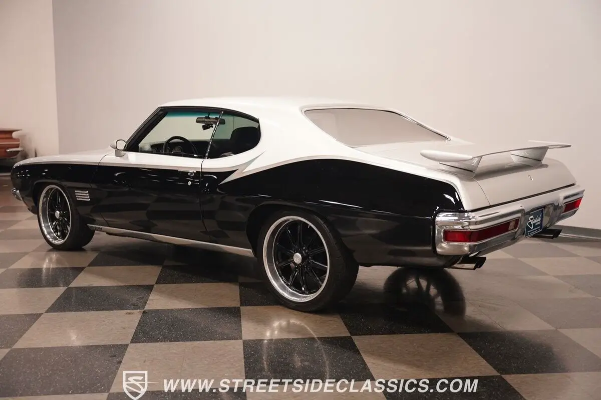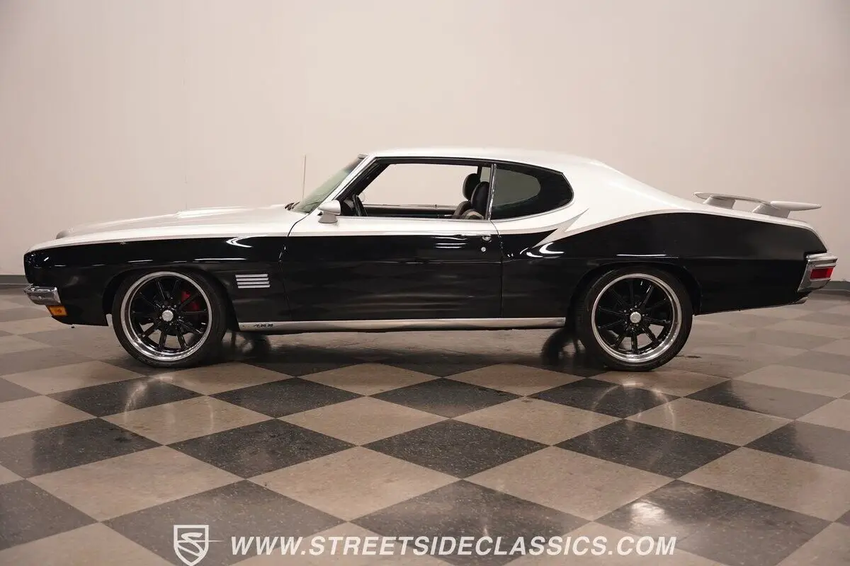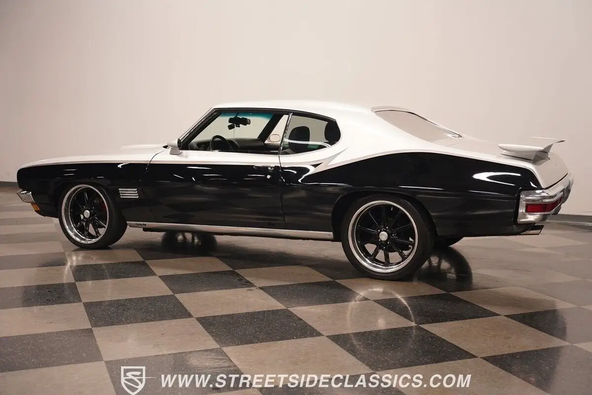 Vehicle Original VIN : 237370P135173HIGHLIGHTS: • 400 cubic inch V8 engine • TH400 3-speed automatic transmission • Holley 4-barrel carburetor • Power steering • Power brakes with front discs • 10-bolt rear axle • Dual exhaust with Flowmaster mufflers and Pypes X-pipe • Two-tone black and silver paint • Gray stripe tribute to GTO Judge • 20-inch U.S. Mags wheels • 245/35ZR20 front, 245/40ZR20 rear tires • GTO-style rear spoiler • Hood scoops • Custom black and gray interior • Bucket seats in vinyl and cloth • "His and Hers" floor shifter • Center console • Touch screen stereo with Bluetooth and AUX • Power windows • Fresh window seals • Quad rear speakers • Door speakers