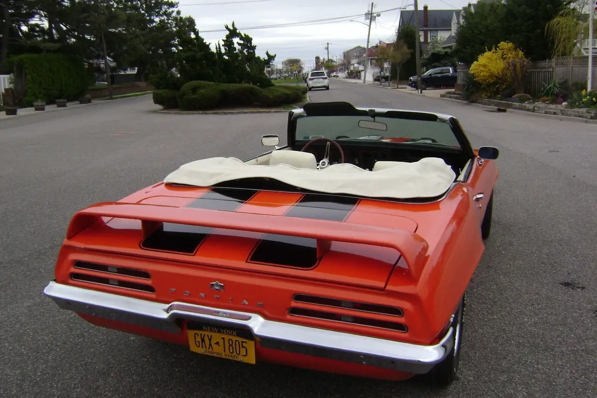 1969 Pontiac Firebird Convertible 400 auto PS PB orange with black racing stripes with dual exhaust 3" pipes .I owed for over 10 year, was a 350 car came with a 400 en, added many extra, 400 hood with ram ai, his and her shifter still have original, rear spoile, hood tac, new am fm radio with aux jack which looks like original with 4 speakers and power antenna .new steering whee, removed ac box and added ac delete plat, blower and inner wheel well, replaced all brake lines and in 2020 added new Edelbrock carb. edl-190, and many more, have all receipts, horn and heater both not working and some rust under doors, horn because steering wheel replacement t never got working and heater after delate plate install.