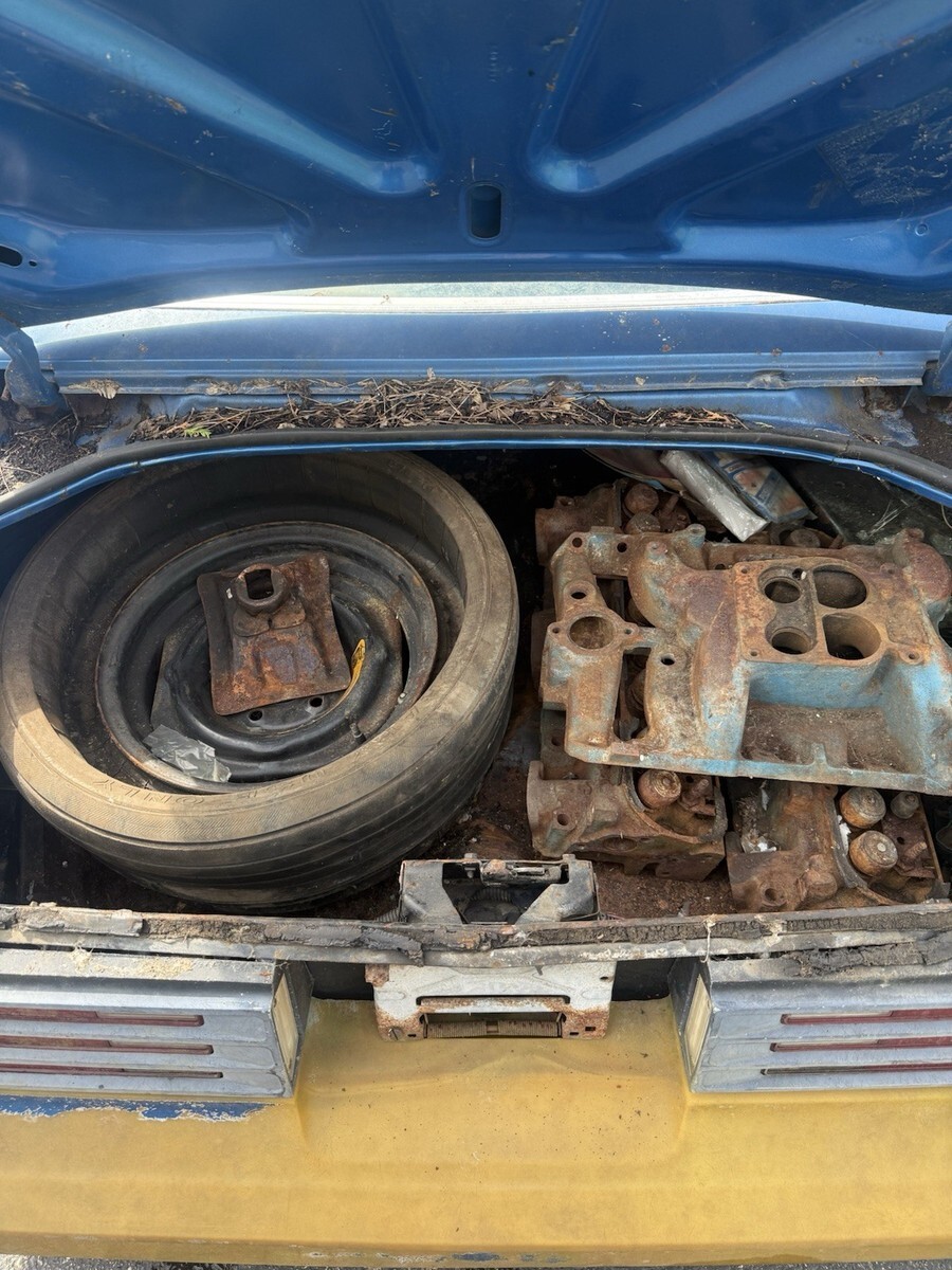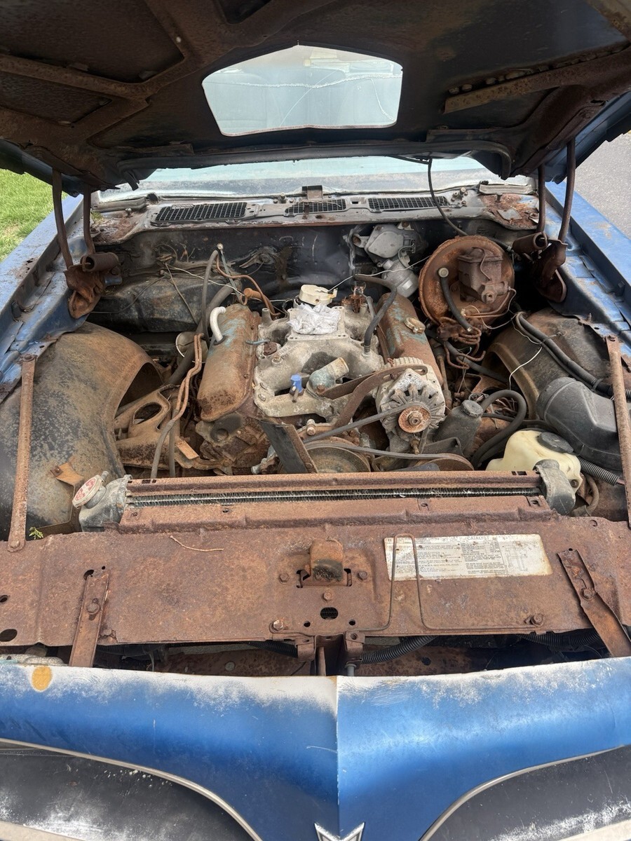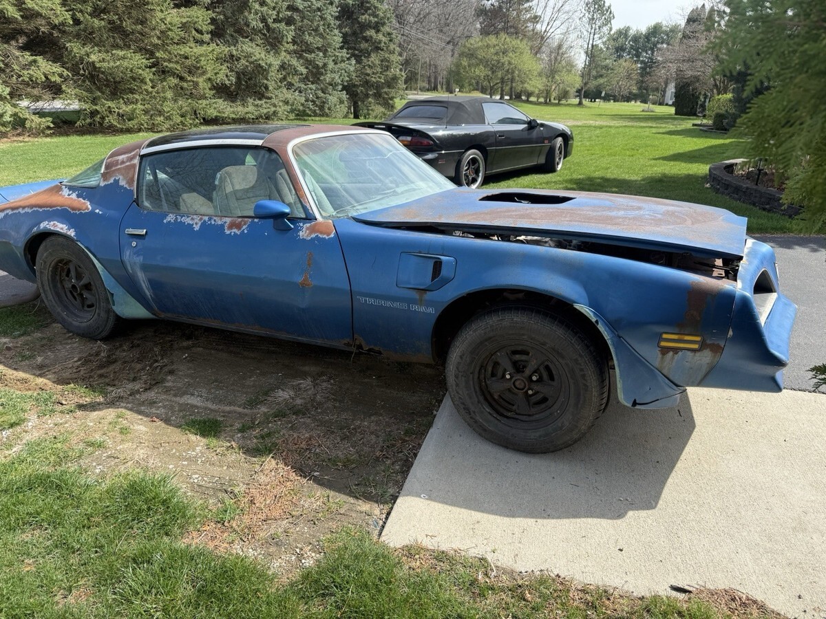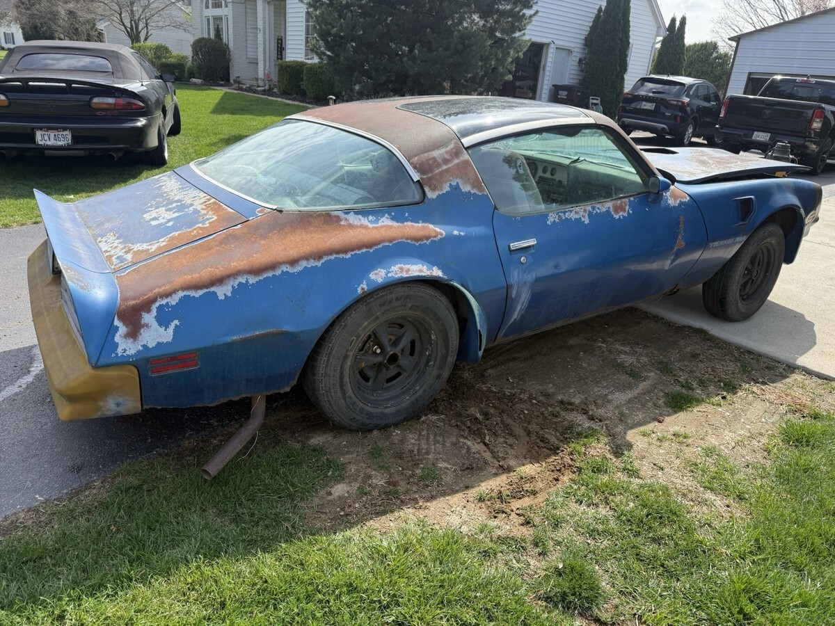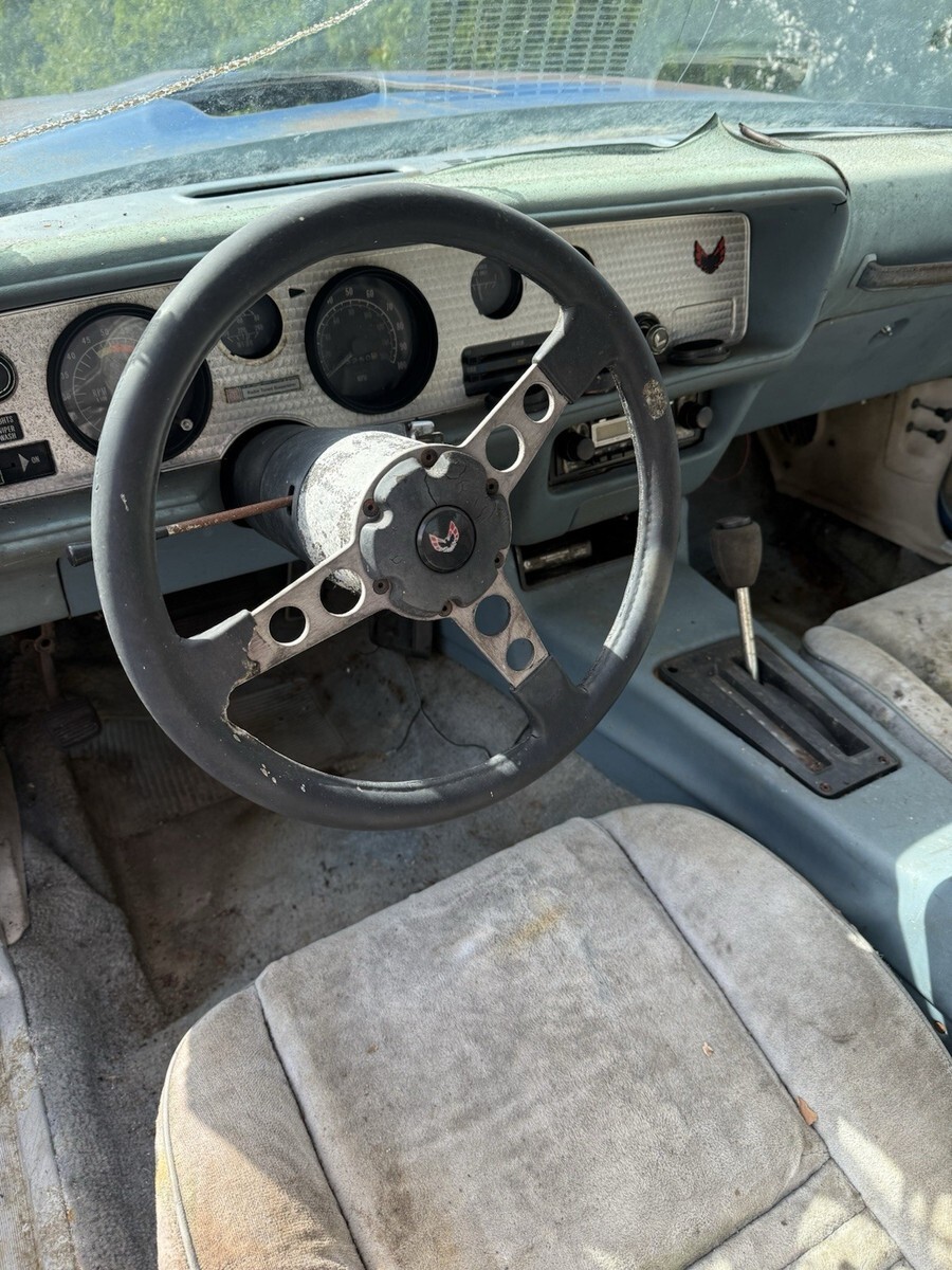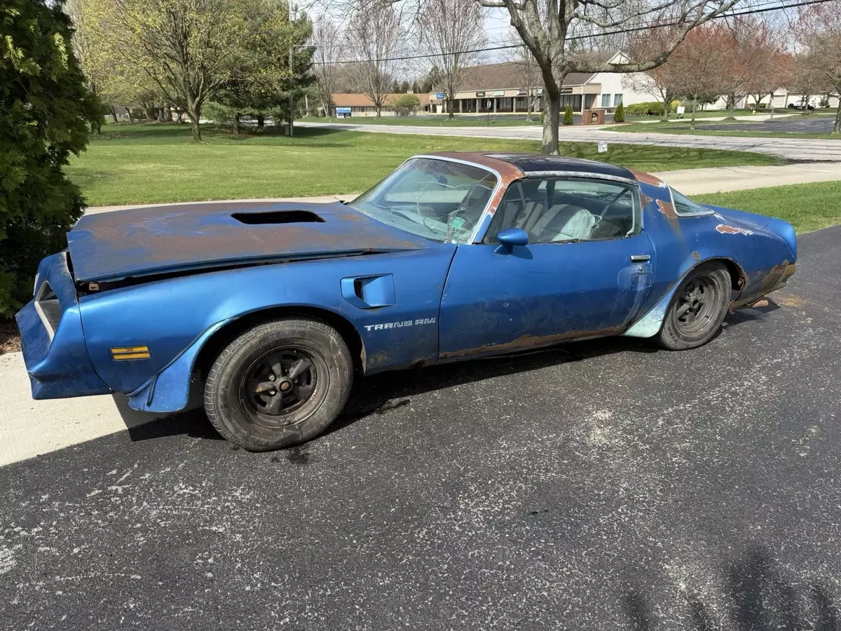 1978 Pontiac Trans Am 400 6.6 Auto Martinique Blue T-tops. Rare one year only color. Fisher t-tops. 400 Pontiac 6.6 L automatic. One owner car. Still have the original title. Car has been sitting for decades. Currently has GTO Ram AIR number 13 heads and a holly intake. Original heads and intake are in the trunk. Original spare tire and various brand new gaskets and parts are in the trunk as well. Numbers matching engine. Car is rough. Needs a complete restoration. Floor is rotted, trunk is rotted. Comes with keys as well. Located in Temperance, MI 48182 near Toledo, Ohio. Rolls and steers easy to put onto a trailer. Pontiac Rally wheel and Tires are in great shape. Any questions please ask. Thank you.