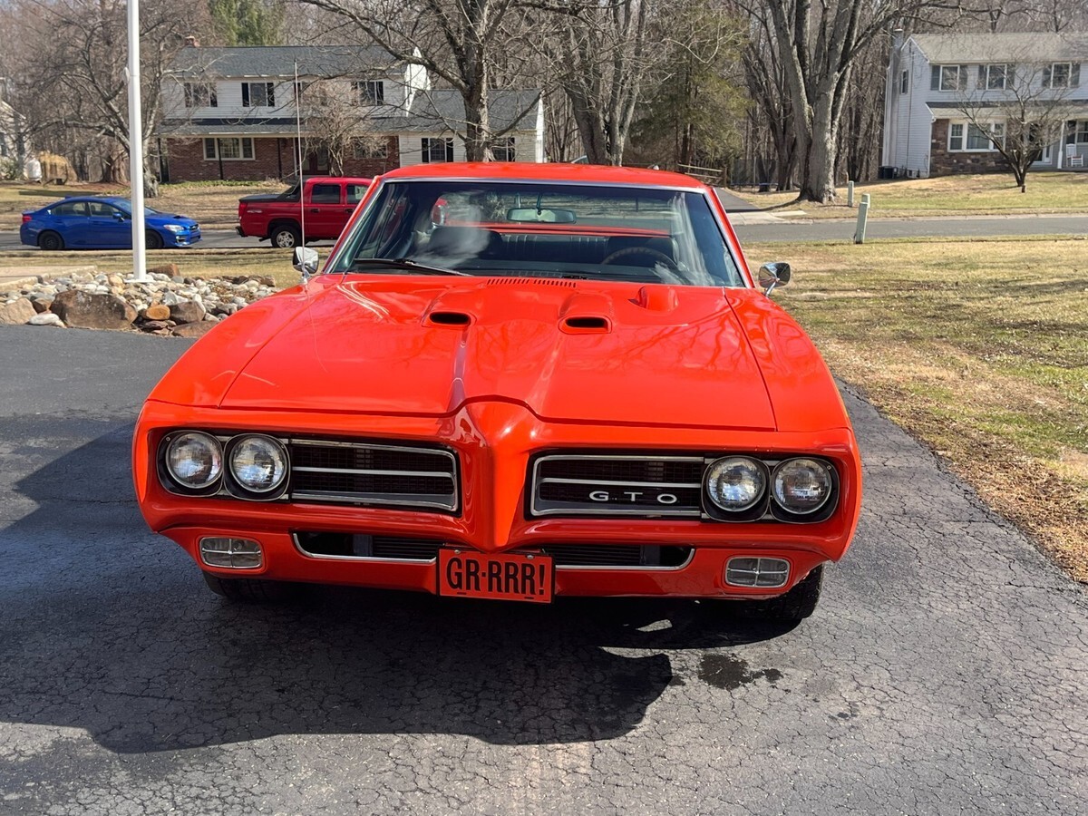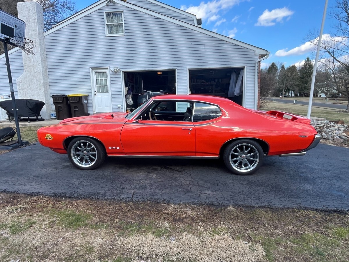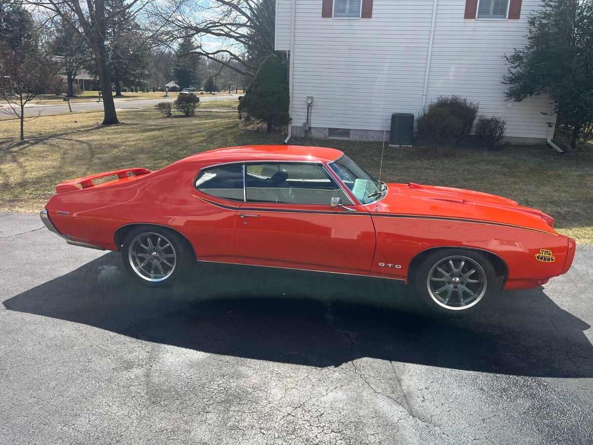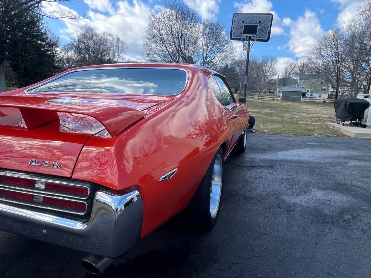 I have up for auction my 1969 Pontiac GTO, Judge clone. This car is a real 1969 GTO as determined by the correct 242 VIN. It is NOT a real Judge. It's built as a Judge clone.I'll start off with a thorough description of the paint/body. The body is in fact pretty darn solid. This car was built in Texas and remained a Texas car until 1999. I have a copy of the Texas title showing that it was a Texas car from 1969-1999. It then was sold to an owner in Georgia, then Indianna, then to me in PA. From what I can see, it appears that the car retains most of the original GM sheet metal. I took pics of the inside of the quarters from the trunk. The quarters still have the GM stampings. The quarters, doors, and fenders are all straight and solid. The paint shines very nicely. It's painted the 69 color Carousel Red. It's a little bit of an older paint job but I think it was done relatively well. The car was restored/painted in 2019. That being said, there are a few minor flaws in the paint. I see a few small areas where it looks like the prep work wasn't done well and that shows some minor flaws. You do have to be up close on the paint to see these issues, but they are there. I do NOT feel that the car needs a repaint. These flaws are only visible when you get up close to the paint.As straight and solid as the body is, the undercarriage appears to be the same. The driver side floors are in near perfect condition. There is a small hole in the passenger side front floor pan about the size of a quarter. I think that a very minor patch could be done as opposed to replacing the entire floor pan. The trunk area is also very solid. Where the trunk pan meets the inner wheel well housing is all solid and rust free. Honestly, for a 56 year old car the body is in pretty darn good shape.The car has a very powerful 1969 428 Pontiac motor that has had some nice work done to it. The motor has a casting number of 9792968 with an engine code of YH. This decodes to a 1969 Pontiac 428 with a factory rating of 360HP. The cylinder heads are the correct for 1969 #62 heads. These heads come back as Ram Air heads on a 400. For 1969 they were available as Ram Air III heads for 400 motors and 360 or 390HP heads for a 428.Here are the details I have on the motor: It's a 69 428 that has been bored .030 over with a forged and balanced rotating assembly. The camshaft is a hydraulic roller cam with the following specs-282 advertised duration, .498" lift, and a 108 LSA (lobe separation angle). It's also got 1.6 roller rockers. The #62 heads have had some minor port work to them. On top of that it runs an HEI distributor, an Edelbrock 2156 Performer intake with a Holley 750 double pumper carburetor. The motor fires right up and has a nice healthy idle with a slight lope to it. It pulls STRONG. I am going to estimate that this motor puts out about 400-450HP. Exhaust gasses exit through a set of long tube headers to a 2.5" exhaust system through Flowmaster 40 series mufflers. The car sounds nasty!I spent a great deal of time this winter getting the motor detailed and tuned up for the upcoming season. I did a full tune up with new plugs, cap, rotor, and wires. I installed a new chrome air cleaner, new 6AN fuel filter with all new fuel pump and fuel lines. I also did all new belts, hoses, heater hoses, 180 degree thermostat, all new fluids, new HD fan clutch, and factory style 7 blade fan. I also installed a brand new aluminum 3 core radiator.The power of the motor runs back through a Muncie M-20 4 speed to a brand new Nodular posi rear with 3:90 gears. When I got the car, it had a 3:23 rear. I noticed that it had a slight leak from the passenger side. I wasn't sure if it was a wheel cylinder or axle seal, so I pulled the rear wheel. Unfortunately, it was a wheel seal so as I was making plans to do all new bearings and seals, my buddy told me about a guy he knew selling a newly built Noduar Pontiac rear from a 67 GTO. So I grabbed the newly built rear and swapped it out. While I had the rear out, I decided to do it right. I installed new tubular upper and lower control arms with polyurethane bushings, all new brakes, drums, spring kits, wheel cylinders, stainless brake lines, new rubber hose from the rear to the body, and 2 new emergency brake cables. Basically, the entire rear brake system is brand new. The rear is a Nodular 10 bolt. It has the "N" cast into the housing and it has a new posi unit with 3:90 gears. It's also got all new bearings and seals.The interior of the car is definitely an area that needs addressing. Let me explain as honestly as possible. For starters, the dash and dash pad are in very nice shape. All lights, turn signals, etc all work. The seats are original from 1969 and need to be re-upholstered. The good news is that I have purchased a complete set of both front and rear seat covers from Legendary Interiors. I also have a brand new set of the plastic seat backs and sides for the seats. The carpet is older and a little tired. If you are removing the seats to re-upholster them, it's a perfect time to install a new carpet. The door panels are in nice shape and I wouldn't replace them. It's really just the seats and carpet that need addressing.The car comes with power steering and power brakes. The brakes are disc in the front and drum in the rear. The front and rear suspension is tight. The rear suspension is all new with polyurethane bushings and tubular control arms. The car doesn't drift all over the road. It runs straight. The wheels and tires are another part of the car that needs addressing. The bottom line is that they're too big. The rear tires and wheels fit OK. They only rub slightly if you go over a speedbump, but the front's rub on turns. They don't prevent you from turning, but they definitely rub. The tires and wheels are 18". The front tires are 245/45/18 and the rear's are 275/40/18. I don't know if the tires are too big or the wheels have the wrong offset. I haven't removed a front wheel to meas