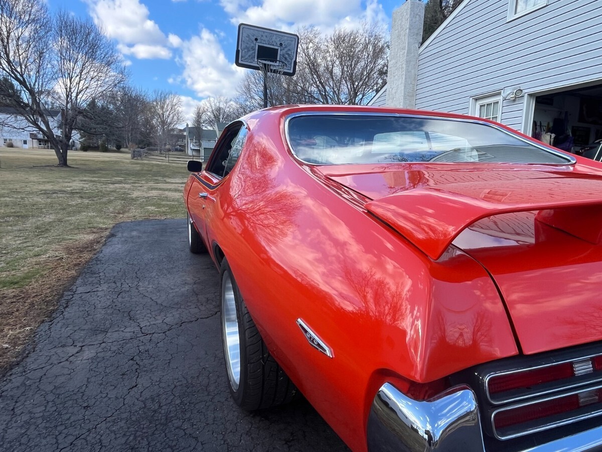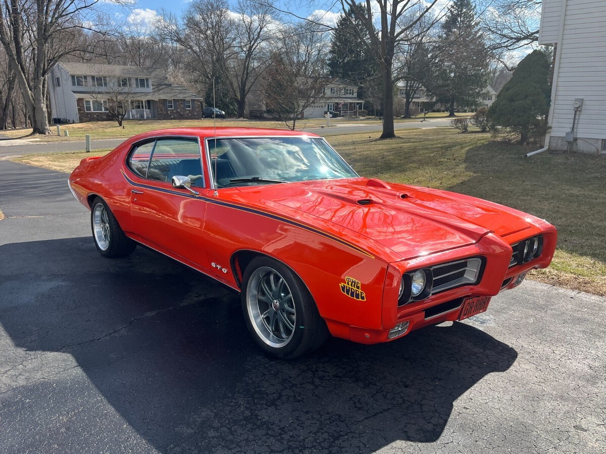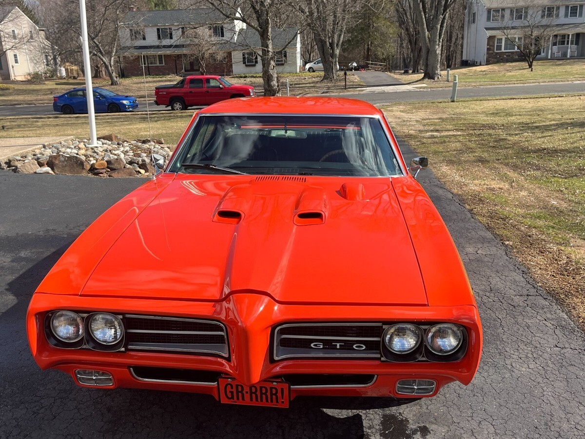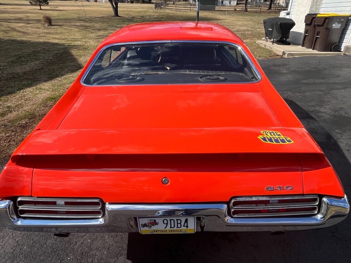 I have up for auction my 1969 Pontiac GTO, Judge clone. This car is a real 1969 GTO as determined by the correct 242 VIN. It is NOT a real Judge. It's built as a Judge clone.I'll start off with a thorough description of the paint/body. The body is in fact pretty darn solid. This car was built in Texas and remained a Texas car until 1999. I have a copy of the Texas title showing that it was a Texas car from 1969-1999. It then was sold to an owner in Georgia, then Indianna, then to me in PA. From what I can see, it appears that the car retains most of the original GM sheet metal. I took pics of the inside of the quarters from the trunk. The quarters still have the GM stampings. The quarters, doors, and fenders are all straight and solid. The paint shines very nicely. It's painted the 69 color Carousel Red. It's a little bit of an older paint job but I think it was done relatively well. The car was restored/painted in 2019. That being said, there are a few minor flaws in the paint. I see a few small areas where it looks like the prep work wasn't done well and that shows some minor flaws. You do have to be up close on the paint to see these issues, but they are there. I do NOT feel that the car needs a repaint. These flaws are only visible when you get up close to the paint.As straight and solid as the body is, the undercarriage appears to be the same. The driver side floors are in near perfect condition. There is a small hole in the passenger side front floor pan about the size of a quarter. I think that a very minor patch could be done as opposed to replacing the entire floor pan. The trunk area is also very solid. Where the trunk pan meets the inner wheel well housing is all solid and rust free. Honestly, for a 56 year old car the body is in pretty darn good shape.The car has a very powerful 1969 428 Pontiac motor that has had some nice work done to it. The motor has a casting number of 9792968 with an engine code of YH. This decodes to a 1969 Pontiac 428 with a factory rating of 360HP. The cylinder heads are the correct for 1969 #62 heads. These heads come back as Ram Air heads on a 400. For 1969 they were available as Ram Air III heads for 400 motors and 360 or 390HP heads for a 428.Here are the details I have on the motor: It's a 69 428 that has been bored .030 over with a forged and balanced rotating assembly. The camshaft is a hydraulic roller cam with the following specs-282 advertised duration, .498" lift, and a 108 LSA (lobe separation angle). It's also got 1.6 roller rockers. The #62 heads have had some minor port work to them. On top of that it runs an HEI distributor, an Edelbrock 2156 Performer intake with a Holley 750 double pumper carburetor. The motor fires right up and has a nice healthy idle with a slight lope to it. It pulls STRONG. I am going to estimate that this motor puts out about 400-450HP. Exhaust gasses exit through a set of long tube headers to a 2.5" exhaust system through Flowmaster 40 series mufflers. The car sounds nasty!I spent a great deal of time this winter getting the motor detailed and tuned up for the upcoming season. I did a full tune up with new plugs, cap, rotor, and wires. I installed a new chrome air cleaner, new 6AN fuel filter with all new fuel pump and fuel lines. I also did all new belts, hoses, heater hoses, 180 degree thermostat, all new fluids, new HD fan clutch, and factory style 7 blade fan. I also installed a brand new aluminum 3 core radiator.The power of the motor runs back through a Muncie M-20 4 speed to a brand new Nodular posi rear with 3:90 gears. When I got the car, it had a 3:23 rear. I noticed that it had a slight leak from the passenger side. I wasn't sure if it was a wheel cylinder or axle seal, so I pulled the rear wheel. Unfortunately, it was a wheel seal so as I was making plans to do all new bearings and seals, my buddy told me about a guy he knew selling a newly built Noduar Pontiac rear from a 67 GTO. So I grabbed the newly built rear and swapped it out. While I had the rear out, I decided to do it right. I installed new tubular upper and lower control arms with polyurethane bushings, all new brakes, drums, spring kits, wheel cylinders, stainless brake lines, new rubber hose from the rear to the body, and 2 new emergency brake cables. Basically, the entire rear brake system is brand new. The rear is a Nodular 10 bolt. It has the "N" cast into the housing and it has a new posi unit with 3:90 gears. It's also got all new bearings and seals.The interior of the car is definitely an area that needs addressing. Let me explain as honestly as possible. For starters, the dash and dash pad are in very nice shape. All lights, turn signals, etc all work. The seats are original from 1969 and need to be re-upholstered. The good news is that I have purchased a complete set of both front and rear seat covers from Legendary Interiors. I also have a brand new set of the plastic seat backs and sides for the seats. The carpet is older and a little tired. If you are removing the seats to re-upholster them, it's a perfect time to install a new carpet. The door panels are in nice shape and I wouldn't replace them. It's really just the seats and carpet that need addressing.The car comes with power steering and power brakes. The brakes are disc in the front and drum in the rear. The front and rear suspension is tight. The rear suspension is all new with polyurethane bushings and tubular control arms. The car doesn't drift all over the road. It runs straight. The wheels and tires are another part of the car that needs addressing. The bottom line is that they're too big. The rear tires and wheels fit OK. They only rub slightly if you go over a speedbump, but the front's rub on turns. They don't prevent you from turning, but they definitely rub. The tires and wheels are 18". The front tires are 245/45/18 and the rear's are 275/40/18. I don't know if the tires are too big or the wheels have the wrong offset. I haven't removed a front wheel to meas