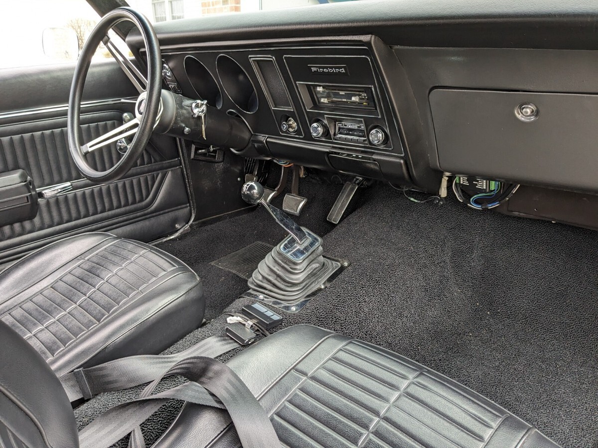 Full frame-off restoration on this 1969 Pontiac Firebird. Engine is a fully rebuilt Chevrolet 350, bored 60 over. Transmission is a Muncie 4 speed, rebuilt within the past year. Rear air shocks for rear height adjustment. Manual steering with no AC. Dakota digital dash with a modern working but classic looking radio. Runs and drives great. Never driven in rain or snow and garage kept.