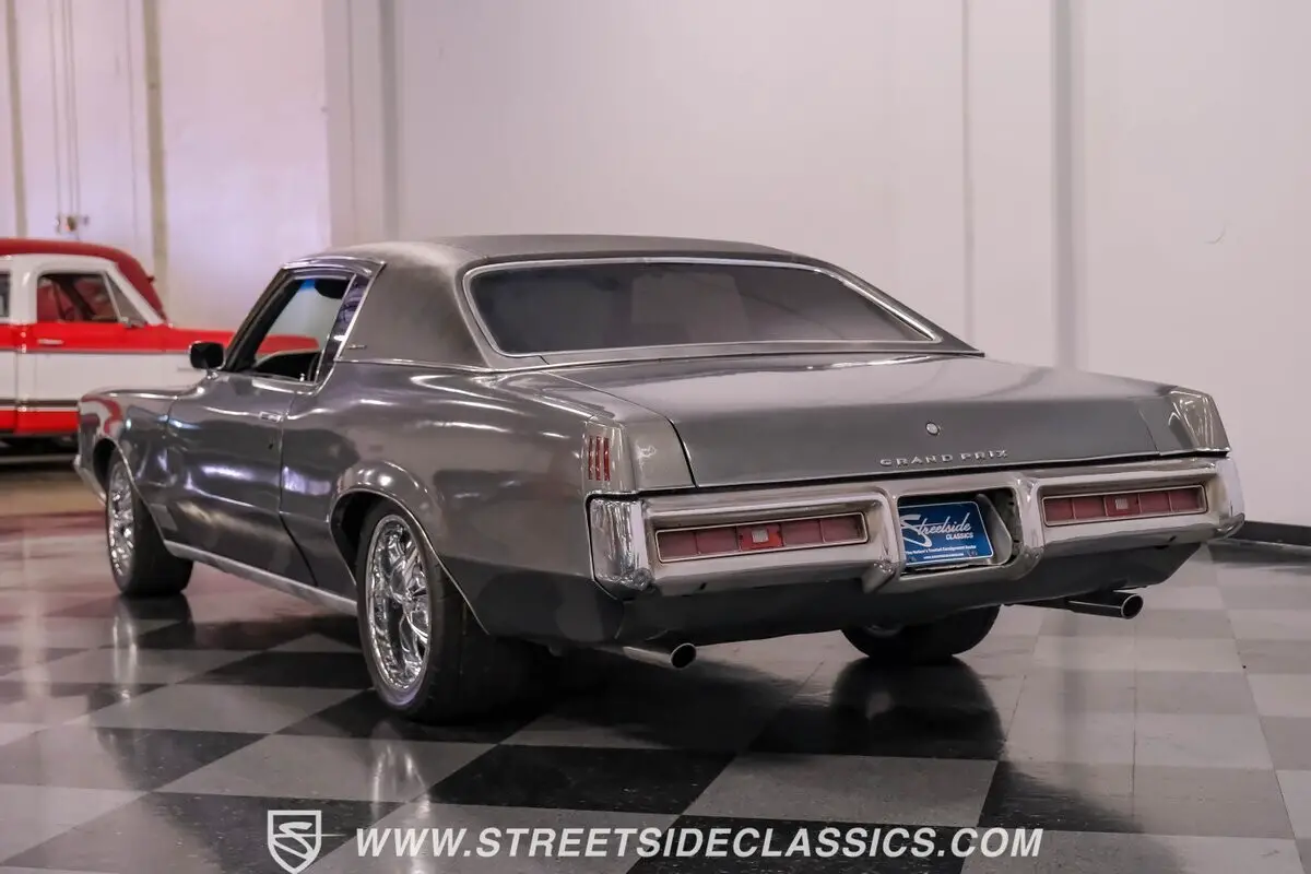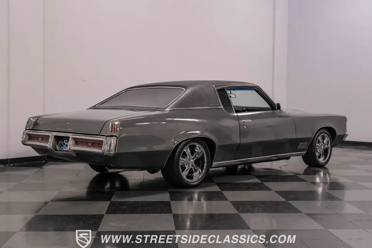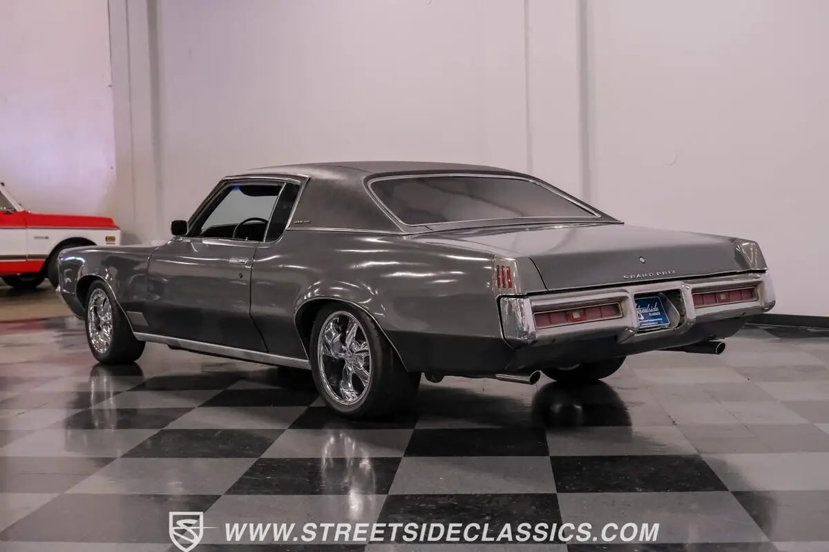Vehicle Original VIN : 276570A120413Elegant muscle defines the 1970 Pontiac Grand Prix Model J in Dark Gray Metallic. Pontiac's personal luxury coupe formula gave us a magnificent machine with its dramatically long hood and shorter rear deck proportions. The black vinyl top adds distinction against the metallic paint while chrome accents around the body provide classic American luxury flair. Wide 17" Foose wheels fill the wheel wells perfectly, with 235/45ZR17 Nitto tires up front and broader 275/40ZR17 Nitto tires out back. The glass features dark tinting all around, adding mystery to the already impressive exterior. Inside, black vinyl covers the comfortable bucket seats inside this Grand Prix. The cabin layout emphasizes control and comfort with a floor-mounted shifter rising from the full-length center console. Equus gauges mounted below the dash provide extra monitoring capability for the driver. The black vinyl upholstery throughout maintains a cohesive appearance, from the seats to the door panels, completing the luxury sport motif Pontiac was famous for. A genuine Pontiac 400 cubic inch V8 gives this Grand Prix serious performance credentials. With 350 horsepower and 10.0:1 compression, fed through a Quadrajet 4-barrel carburetor, acceleration comes on strong. The TH400 3-speed automatic transmission handles the output with ease. Dual exhaust with H-pipe and FlowMaster mufflers produces a wonderful exhaust note. Power steering and power front disc brakes add handling confidence. Coil springs and air shocks in the rear help put the power down through the 10-bolt rear axle. HIGHLIGHTS: • 400 V8 Engine (350 hp, 10.0:1 compression) • TH400 3-Speed Automatic Transmission • 4-Barrel Carburetor • Power Front Disc Brakes • Dual Exhaust with FlowMaster Mufflers • Dark Gray Metallic Paint • Black Vinyl Top • 17" Foose Wheels • 235/45ZR17 Nitto Tires Front, 275/40ZR17 Nitto Tires Rear • Tinted Windows • Black Interior with Bucket Seats and Console • Power Steering • Under Dash Equus Gauges Long, low and powerful, the 1970 Pontiac Grand Prix Model J gives you GM luxury with muscle car ability. From its 400 V8 to its black bucket seat interior to those Foose wheels, this Grand Prix makes an unforgettable impression. Call today!