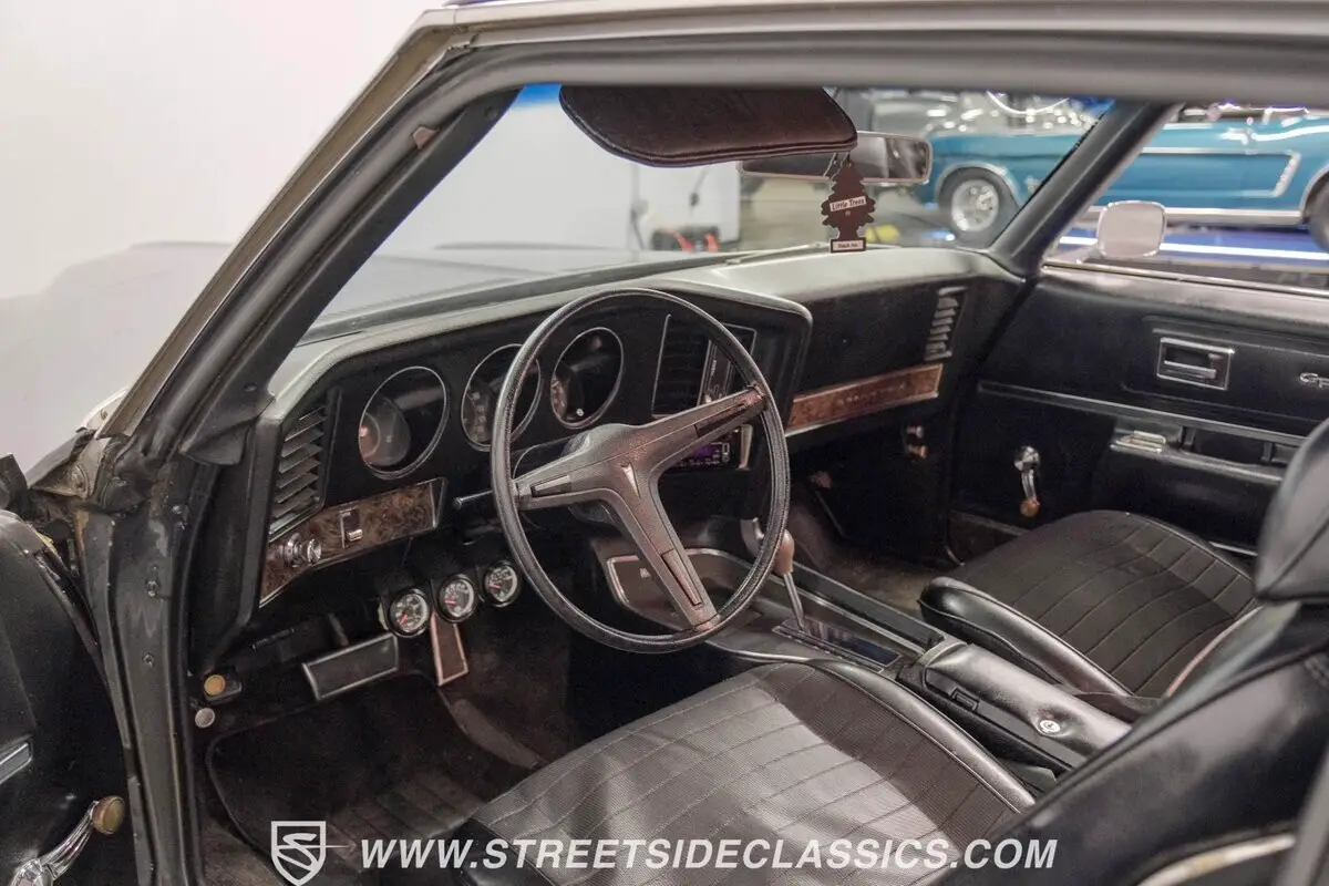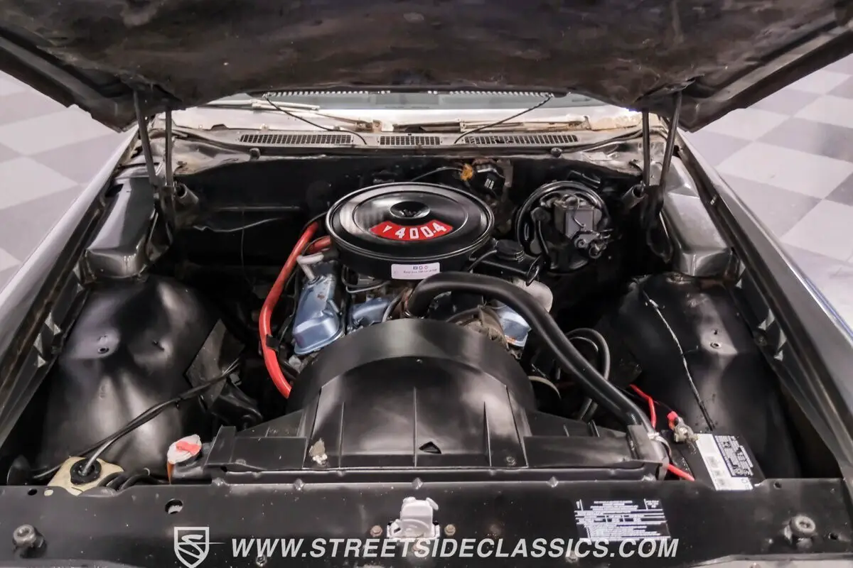 A genuine Pontiac 400 cubic inch V8 gives this Grand Prix serious performance credentials. With 350 horsepower and 10.0:1 compression, fed through a Quadrajet 4-barrel carburetor, acceleration comes on strong. The TH400 3-speed automatic transmission handles the output with ease. Dual exhaust with H-pipe and FlowMaster mufflers produces a wonderful exhaust note. Power steering and power front disc brakes add handling confidence. Coil springs and air shocks in the rear help put the power down through the 10-bolt rear axle.