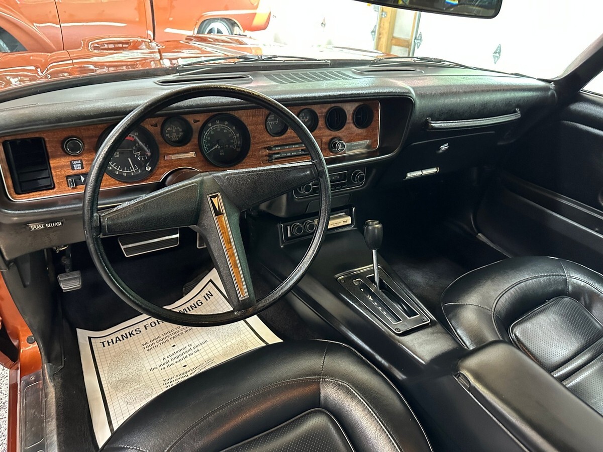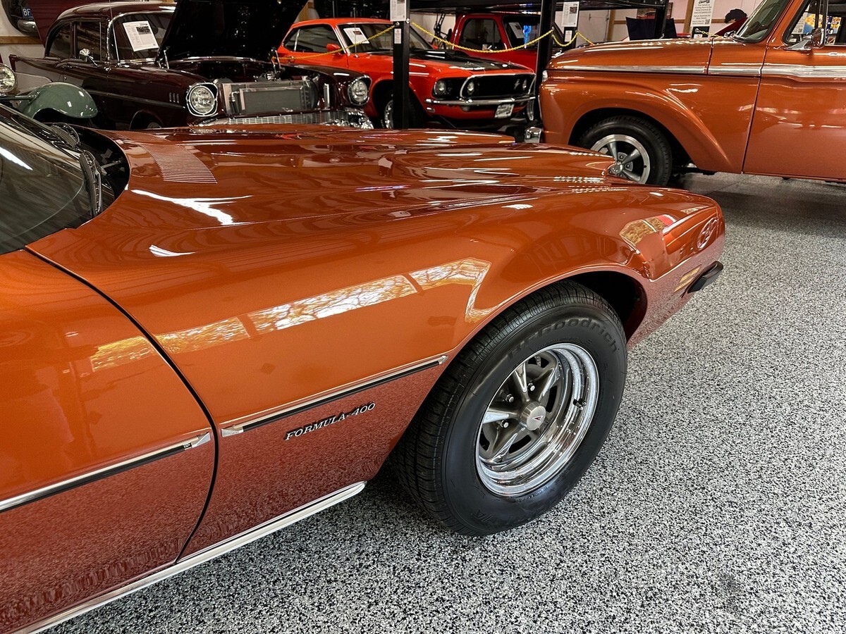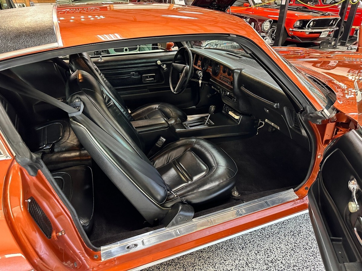 The exterior has received just one repaint in its original Code 64 Persimmon, a rich burnt orange hue that beautifully highlights the car's sculpted lines and aggressive stance. The paint was applied years ago but still presents extremely well, offering a tasteful refresh while preserving the car's original sheet metal, which remains intact and unaltered. The factory 1/4 vinyl top remains in place and adds to the car's period-correct appearance. Sitting on a set of 15-inch Rally II wheels, the car exudes the understated muscle car presence that defined the Formula 400.