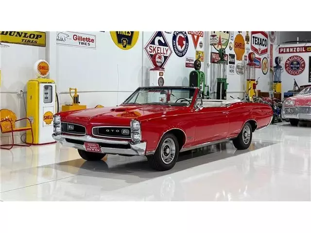 Vehicle Original VIN : 242676P294755Tri-Power 389/360 HP V-8, 4-Speed See car on Hotrodcollection .com HIGHLIGHTS Period correct 389 CI Tri-Power V-8 engine Factory rated at 360 HP and 424 lb-ft of torque Three 2-barrel carburetors 4-speed manual transmission Hurst shifter with a woodgrain shift knob Cherry Red exterior paint Power operated white convertible top Power steering Heavy-duty shocks and springs Front stabilizer bar Rally I wheels with redline tires Seller makes no representations regarding the existence or correctness of any drivetrain codes and/or numbers. Buyer responsible to make his own determinations if that information is desired. This is a PHS documented GTO Convertible that was equipped from the factory with the 389 Tri-Power engine and a 4-speed transmission. In addition, previous ownership stated the "Blank" paint code on trim tag indicates this car was special-ordered in Cherry Red exterior paint for original dealer's wife". The special color red is combined with a white power convertible top with white bucket seats. Standard on 4-speed 1966 GTO's was a Hurst shifter, heavy-duty shock absorbers and springs, and a front stabilizer bar. Also included is the woodgrain trim dashboard fascia and steering wheel rim.