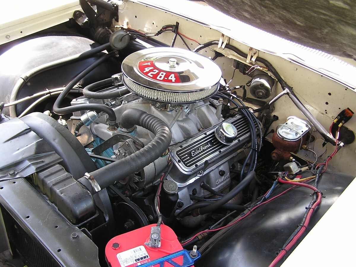 It is now running a built 428 engine from a 1967 car with a manual transmission according to the codes. casting # is 9786136 and stamp code is 480724 WG. The trans is a 400 turbo with a shift kit and around a 2500 stahl converter. Rear end is a factory posi unit with about a 3:55 gear.
