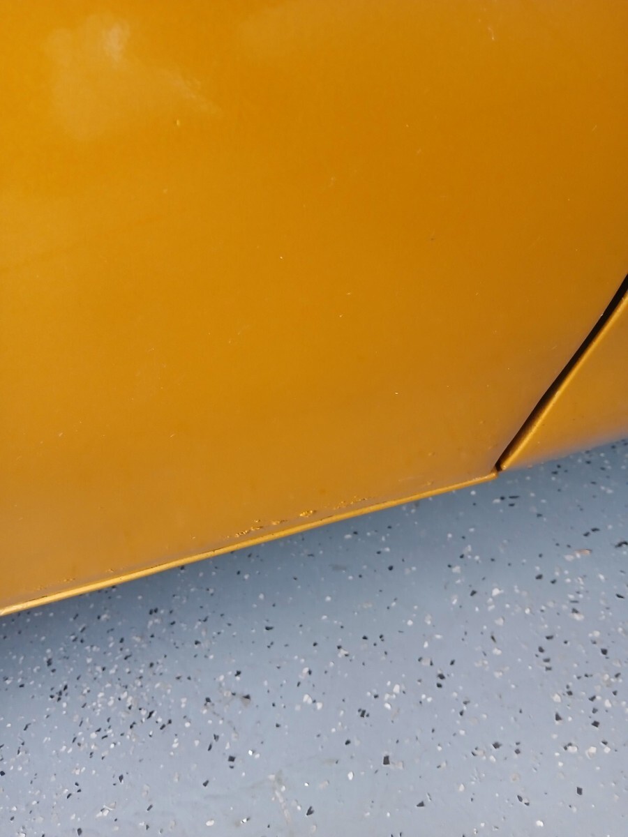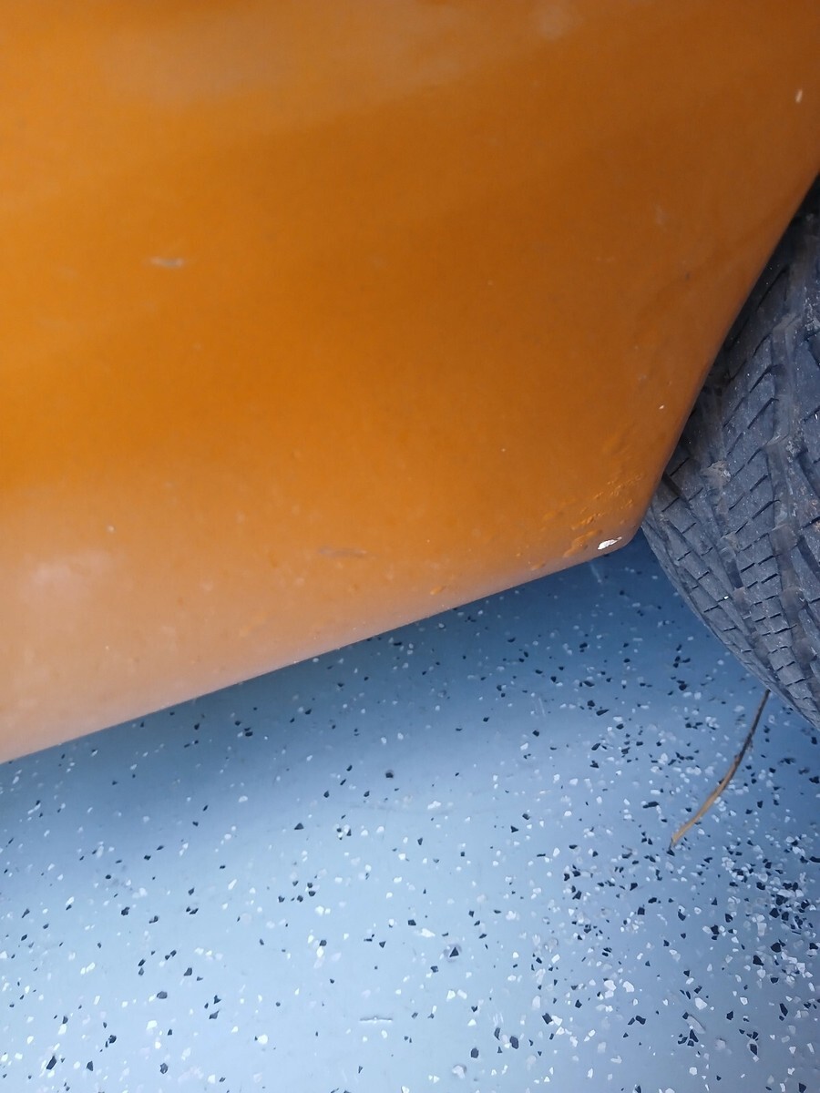 The paint and body work is so so and would be worth doing a nice job with at some point since the rest is finished, but it never bothered me. There is a few small rust bubbles in the passenger door/ rear quarter / rust in lower friver fender. This was how i aquired it and has never gotten any worse since I bought it as it has stayed high and dry in the garage. Like I've Said, it's a 20 footer that shines and fine for a street cruiser but reminds me of a high end Econo Bake job done ok. I'm not a paint and body guy, just trying to describe it honestly as I'm not representing the paint as any show quality or even close to it.