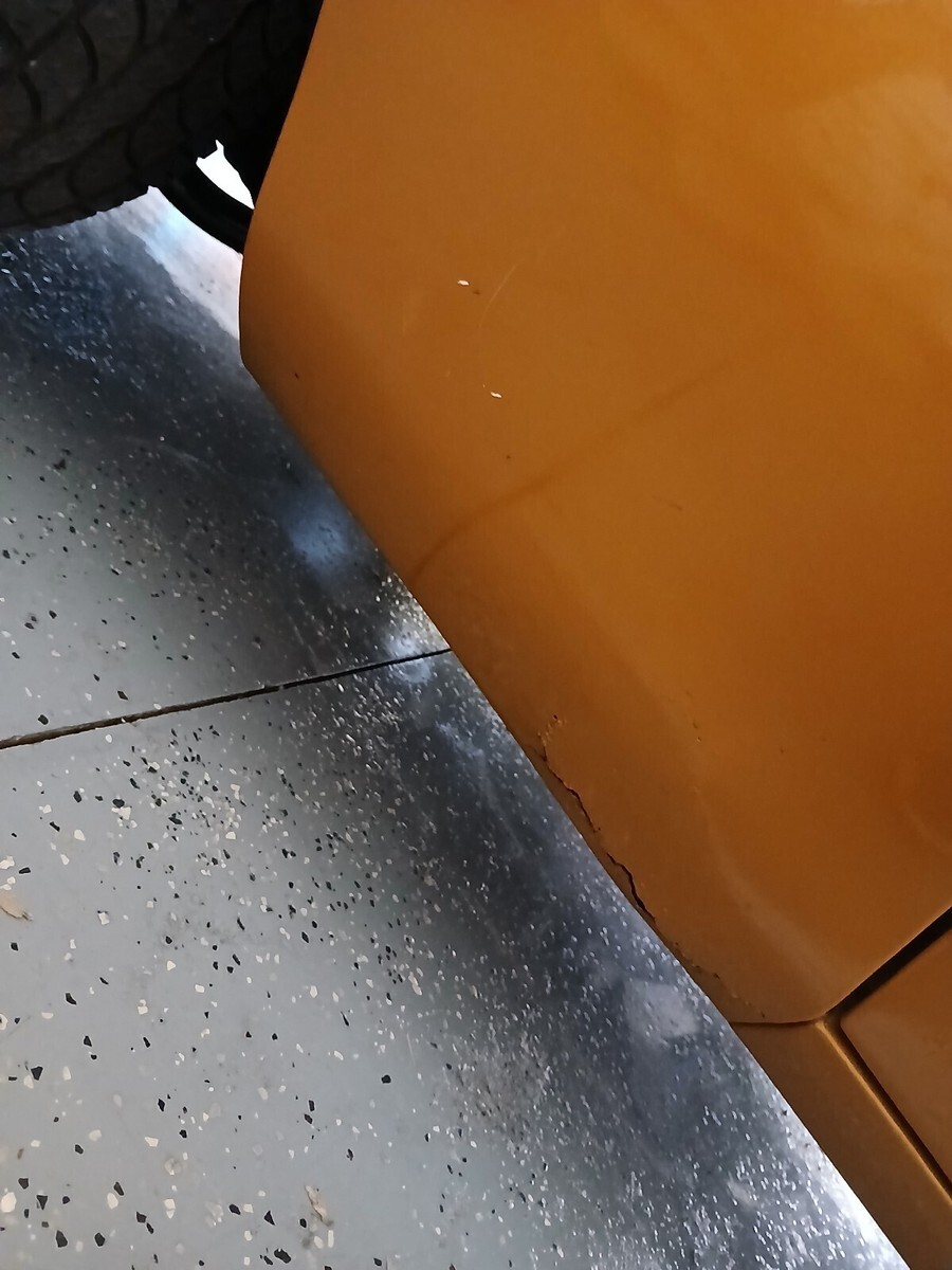 The paint and body work is so so and would be worth doing a nice job with at some point since the rest is finished, but it never bothered me. There is a few small rust bubbles in the passenger door/ rear quarter / rust in lower friver fender. This was how i aquired it and has never gotten any worse since I bought it as it has stayed high and dry in the garage. Like I've Said, it's a 20 footer that shines and fine for a street cruiser but reminds me of a high end Econo Bake job done ok. I'm not a paint and body guy, just trying to describe it honestly as I'm not representing the paint as any show quality or even close to it.