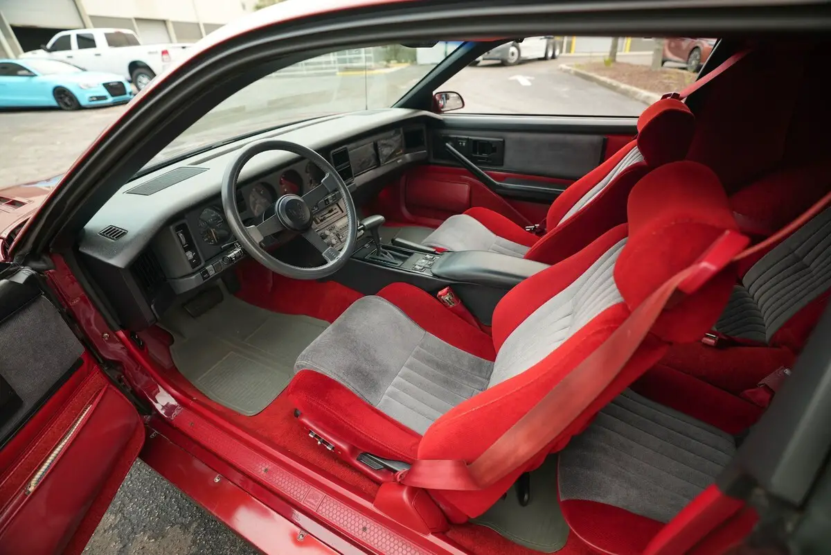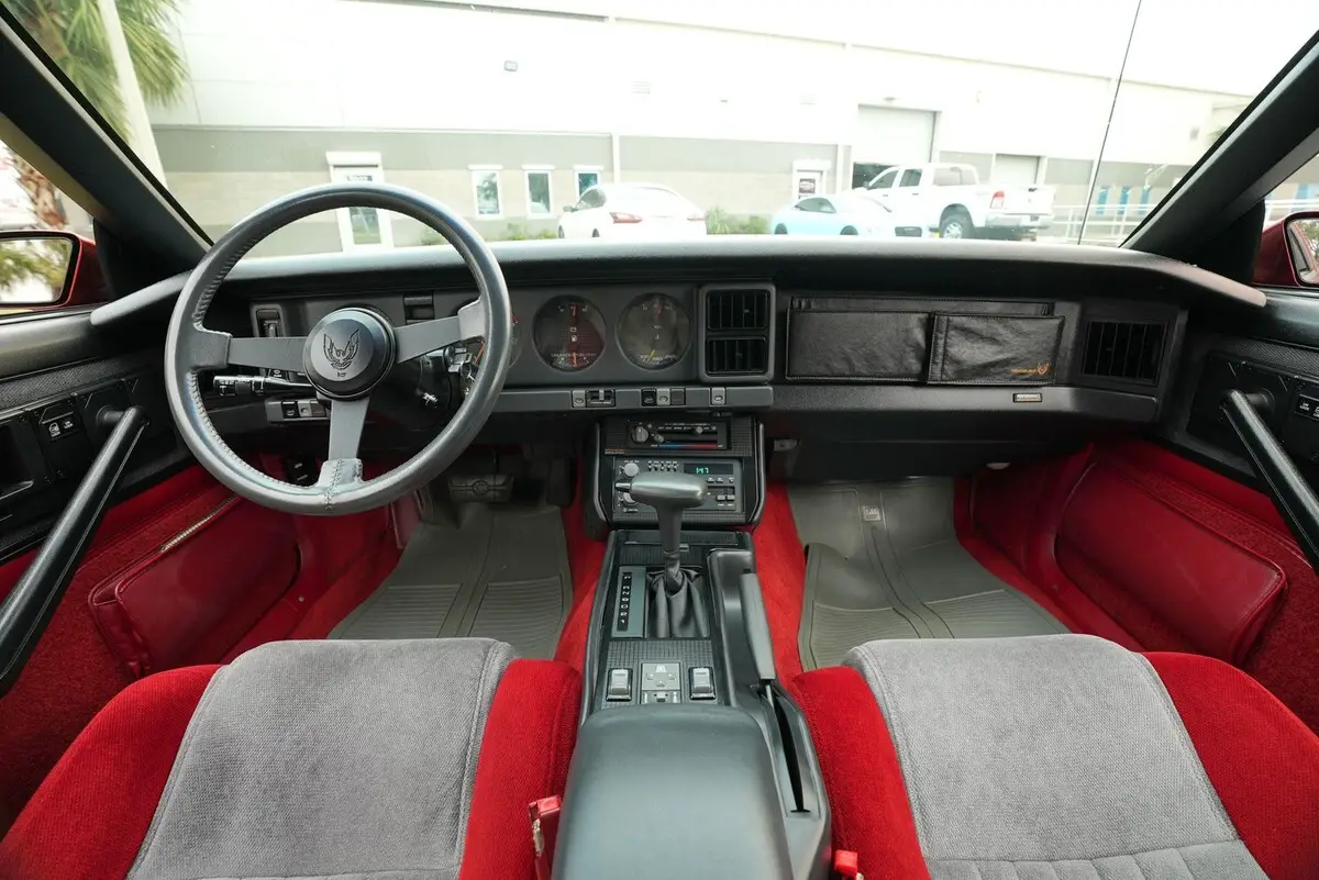 This incredible 86 Pontiac Firebird Trans Am is finished in Redfire Metallic paint accented by a Red and Gray two-tone interior.