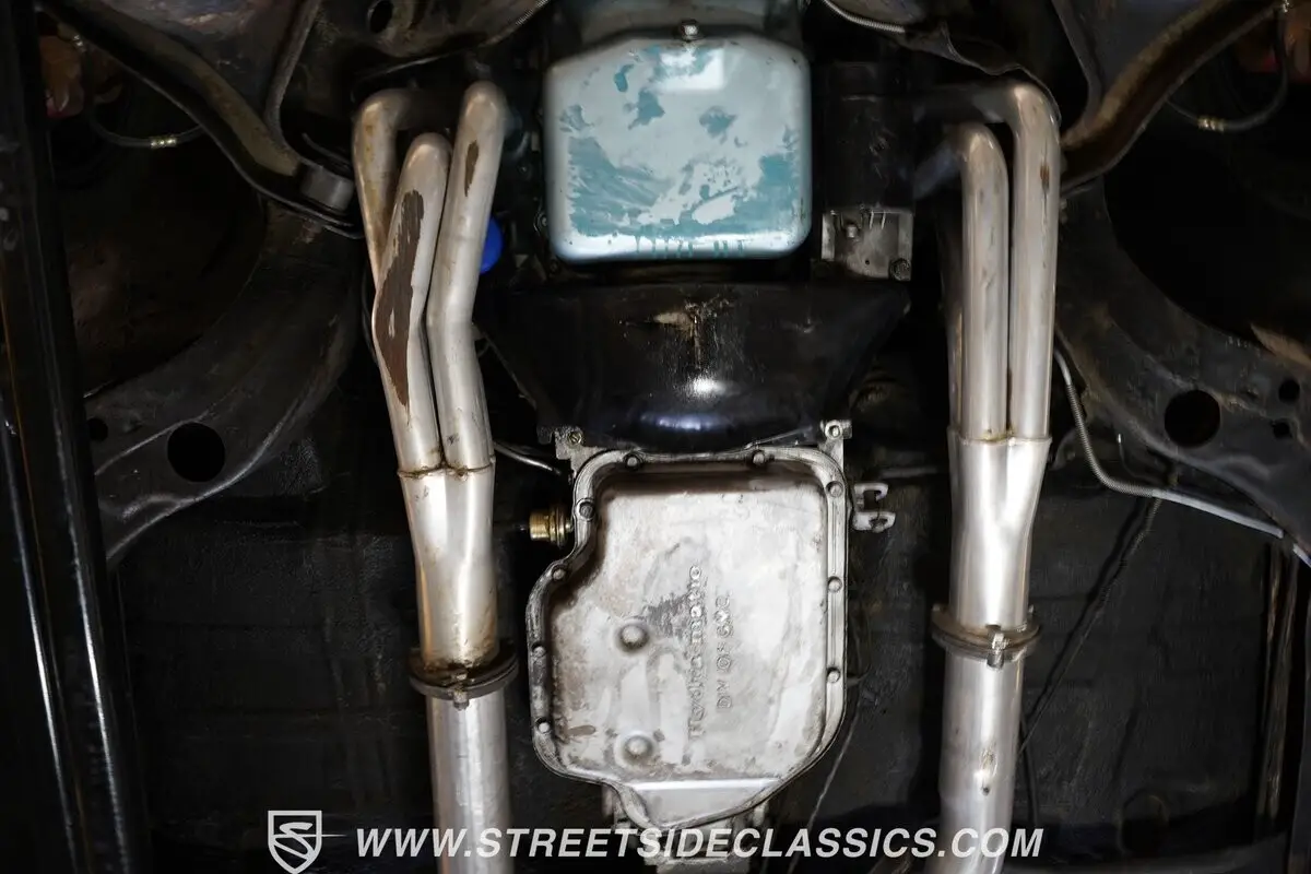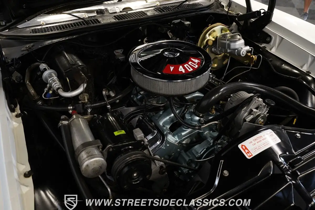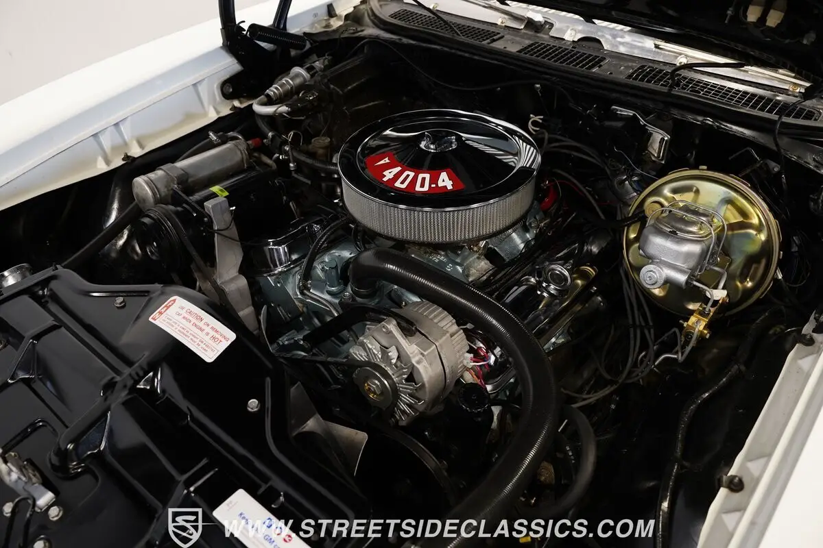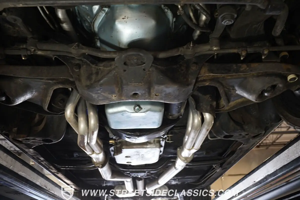 Rumbling powerfully, the 400 V8 has been transformed into a tire-smoking 465 cubic inch monster fed by a Holley 4-barrel carburetor. Mated to the original VIN-matching TH400 3-speed automatic, this combo puts down serious torque. Hooker headers connect to a dual-exhaust system with street-flow mufflers for an exhaust note that announces your arrival blocks away. For stopping power, power disc brakes bring everything to a halt. The large aluminum radiator with fan and clutch keeps temperatures in check while the factory air conditioning upgraded to R134a means you can cruise in comfort no matter how hot the action gets on the street.