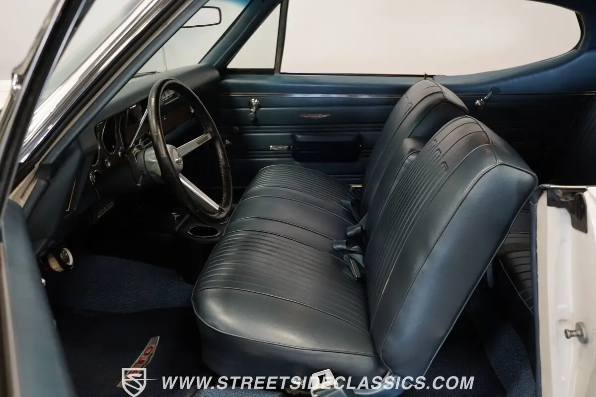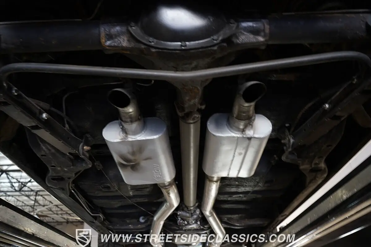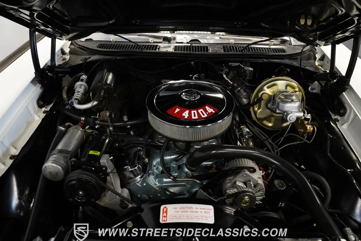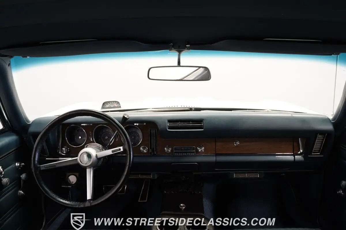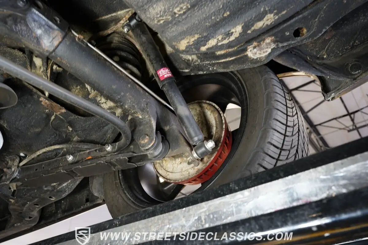 Rumbling powerfully, the 400 V8 has been transformed into a tire-smoking 465 cubic inch monster fed by a Holley 4-barrel carburetor. Mated to the original VIN-matching TH400 3-speed automatic, this combo puts down serious torque. Hooker headers connect to a dual-exhaust system with street-flow mufflers for an exhaust note that announces your arrival blocks away. For stopping power, power disc brakes bring everything to a halt. The large aluminum radiator with fan and clutch keeps temperatures in check while the factory air conditioning upgraded to R134a means you can cruise in comfort no matter how hot the action gets on the street.