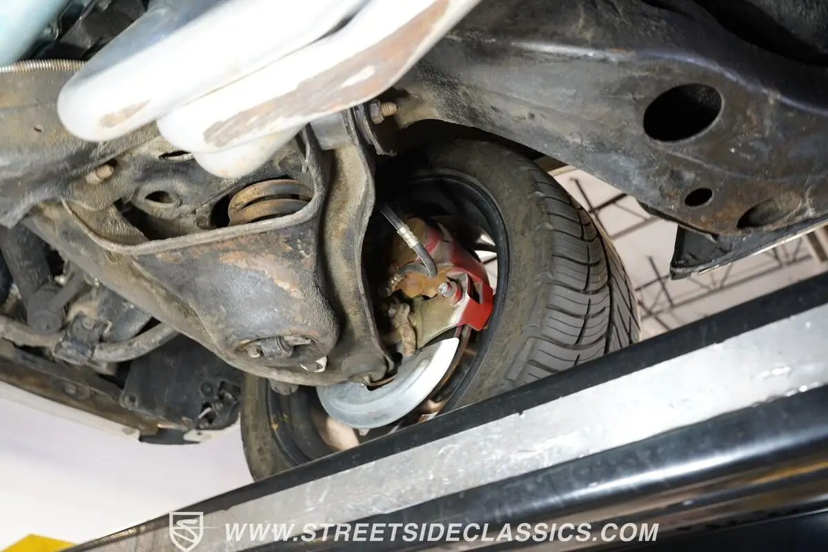 Sitting in the teal vinyl interior puts you in command of pure muscle car magic. Rare split-back bench seats with armrest give plenty of room for your crew as you grip the leather-wrapped factory steering wheel. Wood grain dash details house the working factory clock while you keep tabs on performance. The aftermarket temperature gauge adds modern monitoring capability while staying true to the vintage vibe. Factory AM radio keeps the soundtrack going while the removable console with storage and cupholders adds daily driver convenience without sacrificing the authentic muscle car atmosphere.