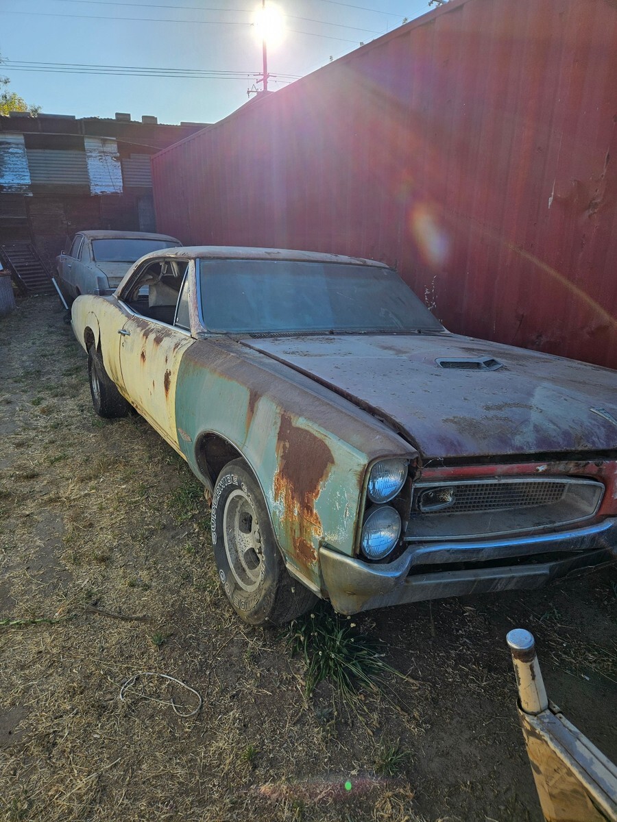 My uncle passed and left this project undone so now up for sale is 3 GTO'S, 1 1966 True 242 vin with a 389 4 speed which my uncle had stated has all matching numbers and 2 LeMan's Clones one is a 1965 389 with auto trans and the other is a 1966 389 with a 4 speed.As you can see in the pictures the 1965's engine is out of it but looks complete, the 66 gto's engine was out of it also but was just sit back in unmounted also shown in picture. I don't know the history of these cars other than they all have clean California titles that I have in hand.