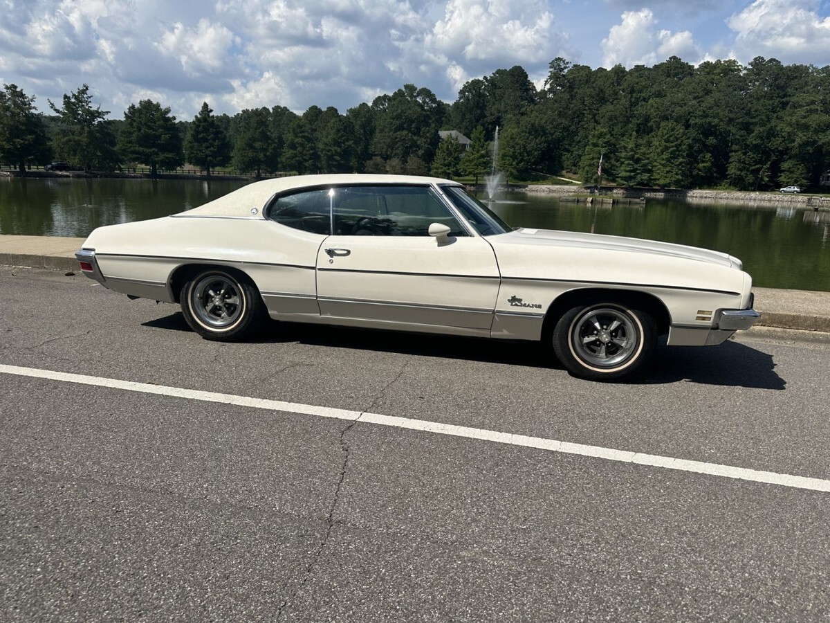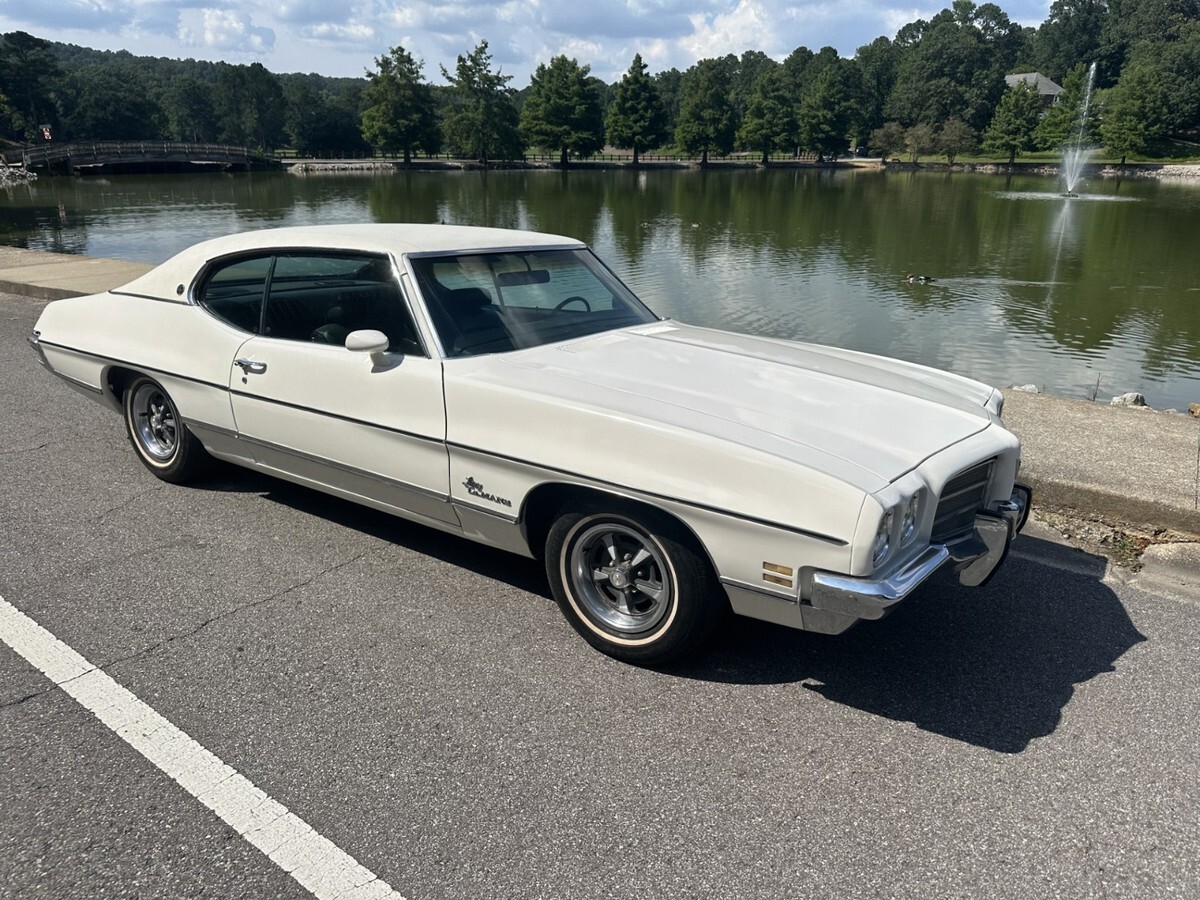 YOU ARE VIEWING A NICE EXAMPLE OF A CLEAN SUPER-SOLID SOUTHERN 1972 PONTIAC LUXURY LEMANS THAT WAS PURCHASED LAST YEAR FROM THE ORIGINAL OWNER. IT'S INTERESTING TO NOTE THAT ONLY 8,641 LUXURY LEMANS WERE 2-DOOR COUPES. THE CAR WAS KEPT IN A CARPORT GARAGE AND HAS ONLY 103K MILES SINCE NEW! THIS PONTIAC WAS ORIGINALLY PURCHASED BY A YOUNG COUPLE AFTER THE CAMEO WHITE PAINT, COUPE STYLING, AND FENDER SKIRTS CAUGHT THE ATTENTION OF THE WIFE. THEY TRADED IN THEIR 1969 GRAND PRIX FOR THE LUXURY LEMANS THE NEXT WEEK. BELOW ARE A FEW OF THE FEATURES THIS MID-1970s MUSCLE CAR OFFERS: