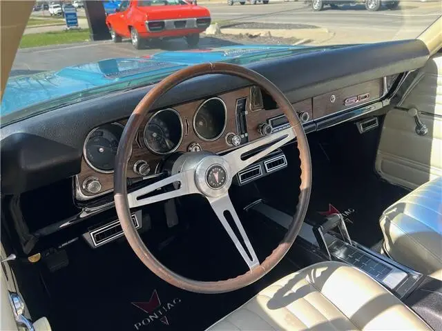Vehicle Original VIN : 738378Rare 1 of 680 Produced SD Beaumont, beautiful factory (K) Tripoli turquoise metallic, white SD stripe, factory (794) Parchment vinyl interior, matching numbers (ET) 396 ci engine, 4 bbl, factory intake manifold, chrome air cleaner & valve covers, headers, HEI distributor, power steering, power front disc brakes, Vintage air conditioning, 400 turbohydramatic transmission, factory bucket seats with center console, tilt column with Sport wheel, factory tach & gauges, Audiosounds radio, remote driver’s mirror, Flowmaster dual exhaust with chrome tips, factory 12 bolt 3.31 rear axle with sway bar, new 275/35ZR20 rear tires, 225/45ZR18 fronts, 18 & 20” Ridler wheels, factory jack with spare, Rare Pontiac Power!