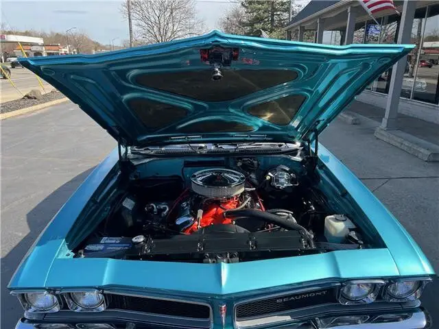 Rare 1 of 680 Produced SD Beaumont, beautiful factory (K) Tripoli turquoise metallic, white SD stripe, factory (794) Parchment vinyl interior, matching numbers (ET) 396 ci engine, 4 bbl, factory intake manifold, chrome air cleaner & valve covers, headers, HEI distributor, power steering, power front disc brakes, Vintage air conditioning, 400 turbohydramatic transmission, factory bucket seats with center console, tilt column with Sport wheel, factory tach & gauges, Audiosounds radio, remote driver’s mirror, Flowmaster dual exhaust with chrome tips, factory 12 bolt 3.31 rear axle with sway bar, new 275/35ZR20 rear tires, 225/45ZR18 fronts, 18 & 20” Ridler wheels, factory jack with spare, Rare Pontiac Power!