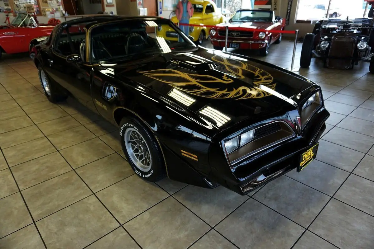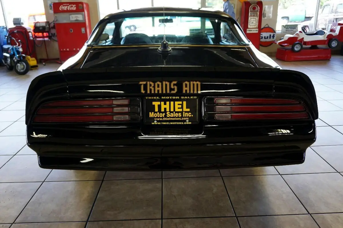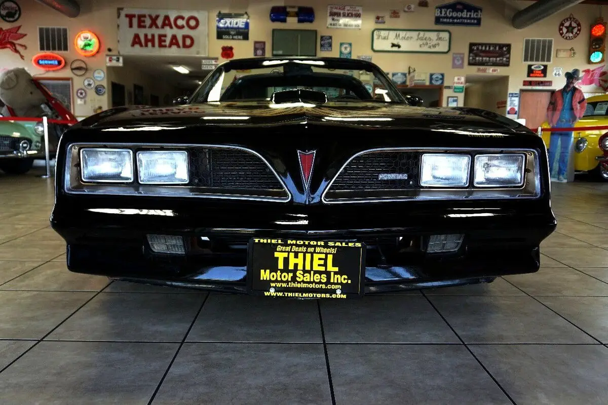 Want to go East Bound & Down like Burt Reynolds? HERE’S YOUR CHANCE!Up for sale is a highly sought-after, iconic 1977 Pontiac Trans Am — the same legendary model made famous by Smokey and the Bandit. Finished in classic Black with factory gold “Snowflake” wheels, Factory T-tops, and the unmistakable Special Edition gold striping and hood “Gold Bird” decal, this car is a true HEAD-TURNER!.As collectors know, the BLACK-and-GOLD 1977 Trans Am isn’t just one of the most recognizable muscle cars of all time — it’s also one of the best investments in the classic car market today. Demand and value are exploding, and the latest NADA BOOK VALUE places this model just under $85,000.We’re offering this piece of American muscle history for ONLY $59,997 — giving you a highly desirable car and serious “INSTANT EQUITY” in a RED-HOT classic muscle car market.Check out the details - Check out the photos - Watch the YouTube “Walk-Around” Video — then CALL or EMAIL Us TODAY to BuY-iT-NOW! Need assistance with FINANCING or SHIPPING??? NO PROBLEM!!! We have the resources to get this “RARE BIRD” from our SHOWROOM FLOOR to YOUR GARAGE DOOR!866-718-6504EXTERIOR:Starlight Black ExteriorSE Gold StripesSE Gold Hood BirdFactory T-TopsFactory Shaker HoodFront & Rear SpoilerMagnetic CB AntennaBFG Radial T/A White-Letter-TiresFront Tires: 235/60/15Rear Tires: 255/60/15INTERIOR:Black Vinyl InteriorFull-Length Center ConsoleSE Gold 3-Spoke Steering WheelAm/Fm 8-Track RadioPace CB Radio - SAME BRAND AS USED IN SMOKEY & THE BANDIT!YES — BURT REYNOLD’S SIGNED GLOVE BOX DOOR!!!!DRIVETRAIN:6.6L 400ci V8 EngineAutomatic TransmissionRear-Wheel-DrivePower SteeringPower BrakesFront-Disc-BrakesChrome Valve CoversEdelbrock Aluminum IntakeEdelbrock Carb.Aluminum RadiatorDual Exhaust w/HP MufflersNice/Clean/Detailed Engine BayStarts Easy/Idles Smooth/Runs Strong (See Video)Here is a GREAT OPPORTUNITY to OWN a RARE PIECE of CLASSIC PONTIAC MUSCLE! As they say, “THE DON’T MAKE THEM LIKE THEY USED TO” and THEY NEVER WILL! Just imagine what such a “RARE BIRD” will be worth in another 5-10-or 15 YEARS!?!?!NADA BOOK VALUE: $84,740BuY-iT-NOW: $59,997CALL or EMAIL us TODAY to BuY-iT-NOW!866-718-6504*. **. *****TRADE-IN ASSISTANCE AVAILABLE****We take trades, Offer Nationwide Financing, and can assist with SHIPPING Door-2-Door WORLDWIDE! We are a 50 YEAR-OLD FAMILY OWNED & OPERATED DEALERSHIP doing BUSINESS the RIGHT WAY since 1972! We offer 5 ACRES of INVENTORY, LARGE AC & HEATED SHOWROOM AREA, and FULL SERVICE DEPARTMENT with CERTIFIED TECHS on STAFF! ****SEE 50+ DETAILED PHOTOS of this SUPER NICE CLASSIC & MANY MORE CLASSIC and COLLECTORS @ **866-718-6504.#THIELMOTORSDEWITTShipping Assistance:We can assist with shipping quotes and shipping arrangements. We are not affiliated with any specific auto carrier. We assume no responsibility for damages incurred after the vehicle leaves our showroom. Any claims or other communication regarding shipment of vehicles will be between you and the transporter, not with Thiel Motor Sales Inc.Purchase Disclaimer:VERY RARE & EYE-Catching 1977 Pontiac Firebird Trans Am. NOT a $250,000+ Barrett-Jackson Bank Breaker, nor a perfect show piece, but a good driver quality car that will turn heads at any classic car event, gas station, or sunny day cruise! Starts Easy, Idles Smooth, Runs Strong (See Video!). As with any vehicle - expect imperfections such as; rock-chips, scratches, dings, dents, etc. to be associated with the vehicle's age, mileage, and previous use. Please call or email with any specific condition questions.866-718-6504.Due to our inventory size, location, and sometimes inclement weather, we are unable to drive every vehicle for long distances. We also cannot guarantee that every gauge, light, window, horn, option, function, etc., will work as it should. These cars are old, and components can fail at any time with little or no warning. Iowa is a non-inspection state; therefor, please check your local and state inspection/emissions requirements. Please note that we do not guarantee any factory or aftermarket air-conditioning systems, gauges, or electrical systems. Given the nature of the vintage vehicles we sell, these components will need upkeep or attention. In addition, many times these vehicles sit for long periods of time and once you begin to drive them, seals harden and gaskets may begin to leak. Classic cars are like old Harley motorcycles, they always leak. Please make sure you are comfortable with this before buying a vintage automobile. Classic vehicles will always require a certain amount of maintenance and upkeep. The information provided in this ad is solely for your convenience and advertising purposes. The description is an opinion only and should not be considered a complete description of any or all faults; it may not be relied upon nor taken as fact or otherwise a representation or warranty of any sort. Please note, we did not build or restore the vehicle. Some vehicles will come with original paperwork, restoration receipts, books, manuals, covers, additional keys; should the vehicle come with any of these items it will be listed in the description and sometimes shown in the photos. All vehicles are sold AS-IS, WHERE-IS with all faults known/unknown and with no implied warranty. ALL SALES ARE FINAL, with no exceptions. Mileage will be considered "exempt" due to age, unless otherwise specified in the description. Pre-Purchase inspections are welcomed and encouraged. We provide many detailed photos, YouTube “walk-around” videos, and describe these vehicles to the best of our ability; however, we are only human and there may be something we miss or see totally differently than you. If you have any questions or concerns, please call or email before making purchase. We do offer a classic car extended warranty package through Freedom Warranties, please contact a Thiel Motor Sales representative for exact coverage and cost.