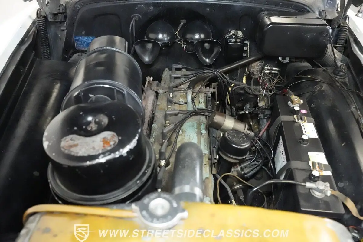 Pontiac's 268 cubic inch straight-eight engine generates power through eight cylinders, working with a 4-speed Hydromatic transmission for smooth gear changes. Carter 2-barrel carburetor feeds the engine, while independent front suspension uses control arms and coil springs. Solid rear axle with leaf springs handles the back end, and drum brakes at all four wheels provide stopping power. Single exhaust system routes through an aftermarket muffler, plus an electric radiator fan assists cooling.