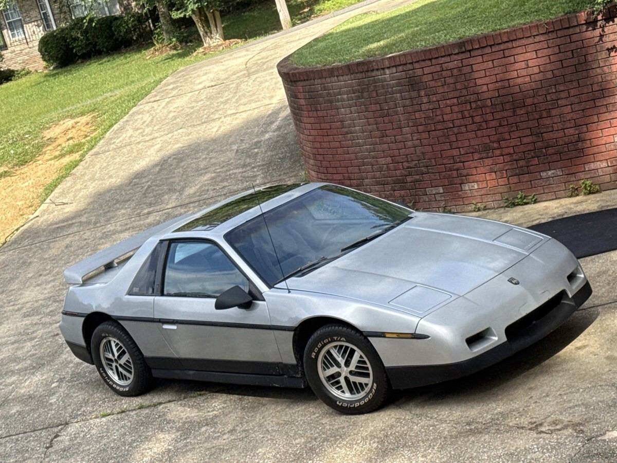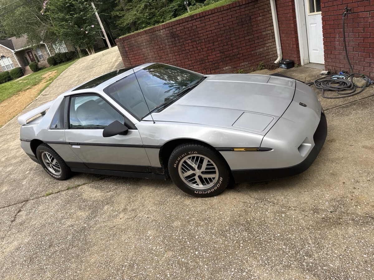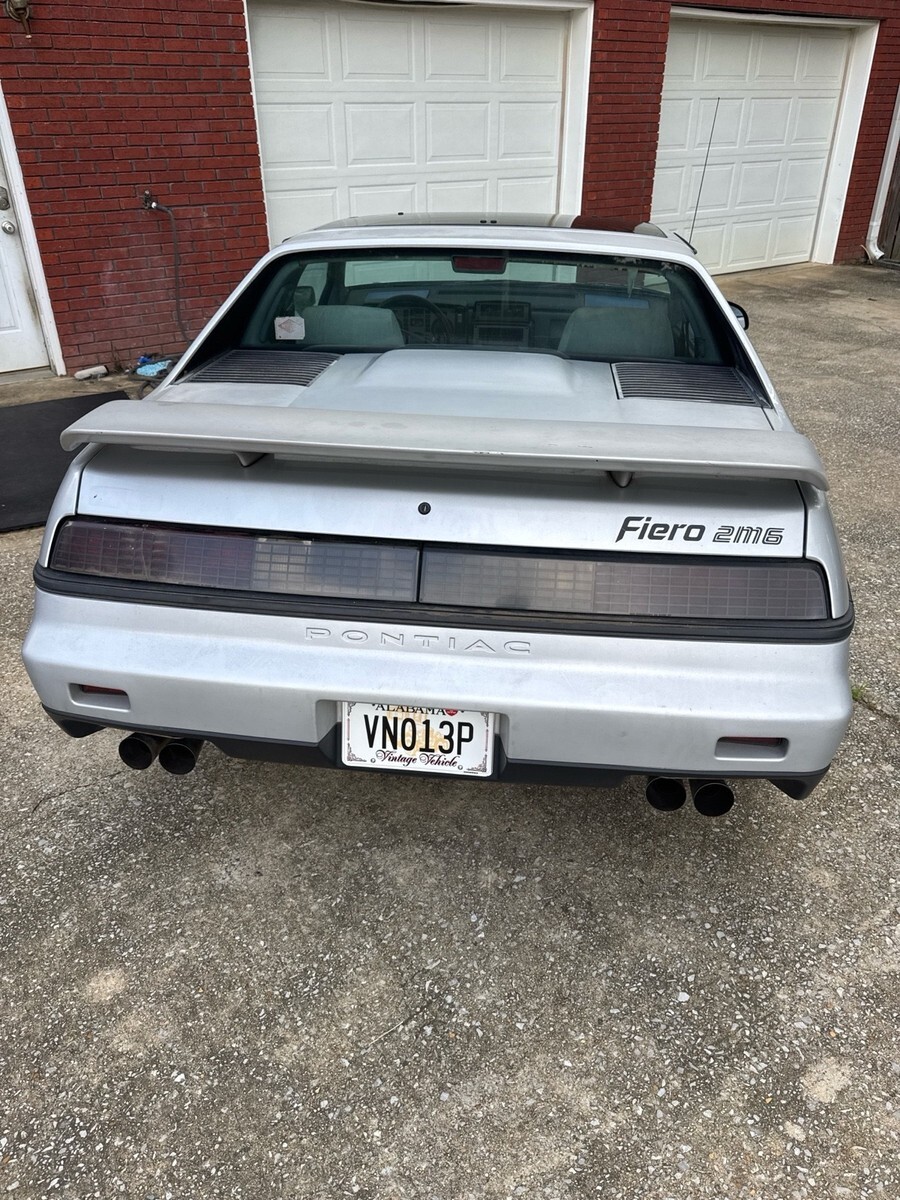 1986 Pontiac Fiero 2M6, V6/4 speed/ac/pdb/ps. new battery. The little car runs and drives. I have driven it 70 miles on the interstate with no issues the air conditioner blows cold. The gas gauge may need a sending unit is showing full. The rest of the gauges, work, speedometer and tachometer as well. The car needs paint some exterior weatherstripping probably will need a cable for the hood latch. I have not tried to latch and lock it as I’m afraid I might not be able to get it unlatched. The tires don’t look like they have many miles on them at all. The car is solid, rust free, and would be a good candidate to just restore build a Lamborghini kit car like a lot of people do I have no idea what the kits cost. They’re probably expensive, or just drive as is. I have not seen any kind of oil leaks or fluids. It does have a exhaust leak. I can hear. I was told these have Muncie 4 speed transmissions. It shifts out good clutch feels good. Brakes are a little spongy. It has had some money spent on rebuilding some of the front end including calipers and pads. This vehicle will be sold with a current registration and a bill of sale. Alabama does not require vehicles over 35 years old to have titles. Feel free to call or text before bidding Dalton 205337445Seven.
