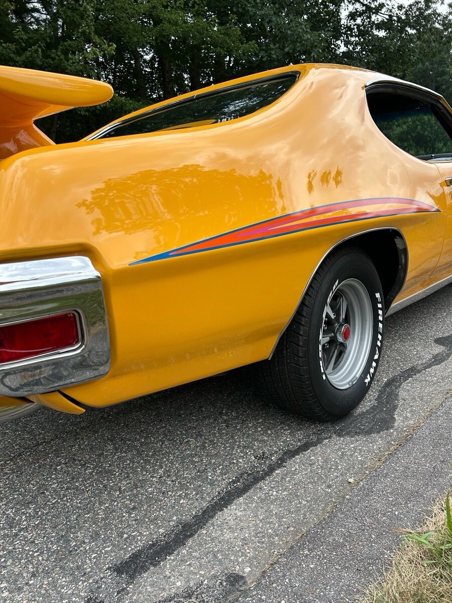Up for sale is a 1970 Pontiac GTO. This car was born a genuine 24237 Car. It is now a Judge replica. Stunning Orbit Orange with Black interior. Immaculate new black interior including headliner, seat foams and covers, carpet, weatherstripping, and trim. It is powered by a freshly rebuilt engine and trans. Its Pontiac 1971 455 YC engine is matched to a muncie 4 speed transmission. Complete new suspension, exhaust system, fuel system, and brake components. Added funtional ram air hood, hood tachometer, Judge graphics, and original 1970 rear spoiler. Sold new in Texas. Incredible undercarriage. According to PHS it’s original equipment includes power steering, power, brakes, air conditioning, decor group, rally wheels, console, AM Radio. Great muscle car reasonably priced $65,000 John Casey 978-994-6884